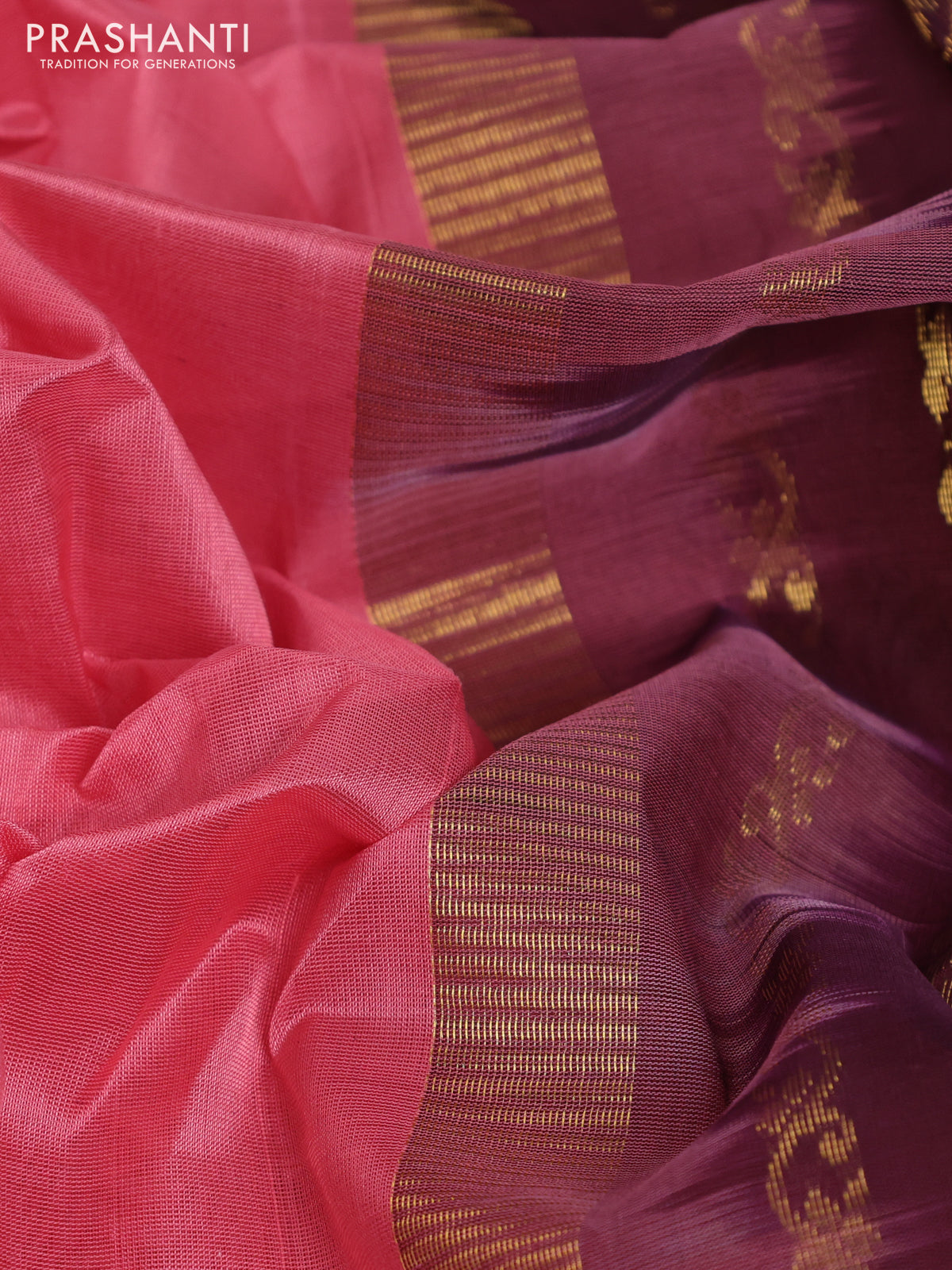 10 Yards silk cotton saree peach pink and deep maroon with plain body and zari woven korvai border