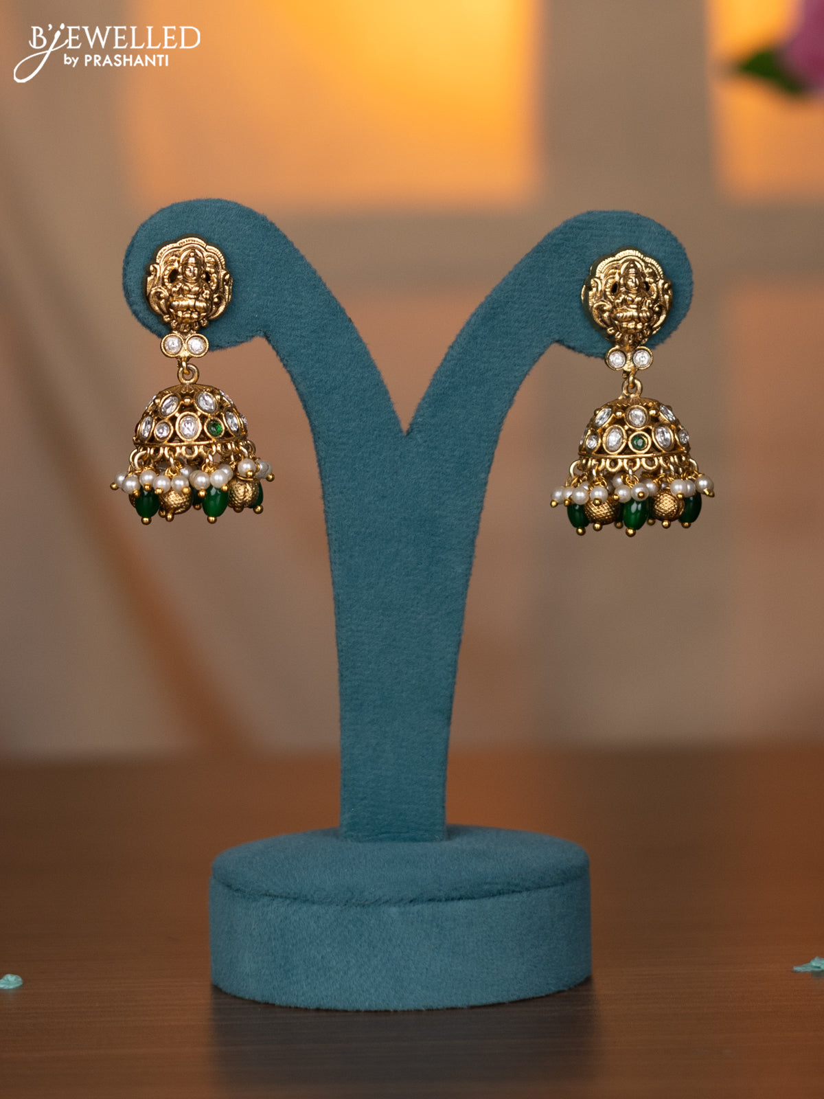 Antique Necklace lakshmi design with kemp & kundan stones and pearl & golden beads hanging
