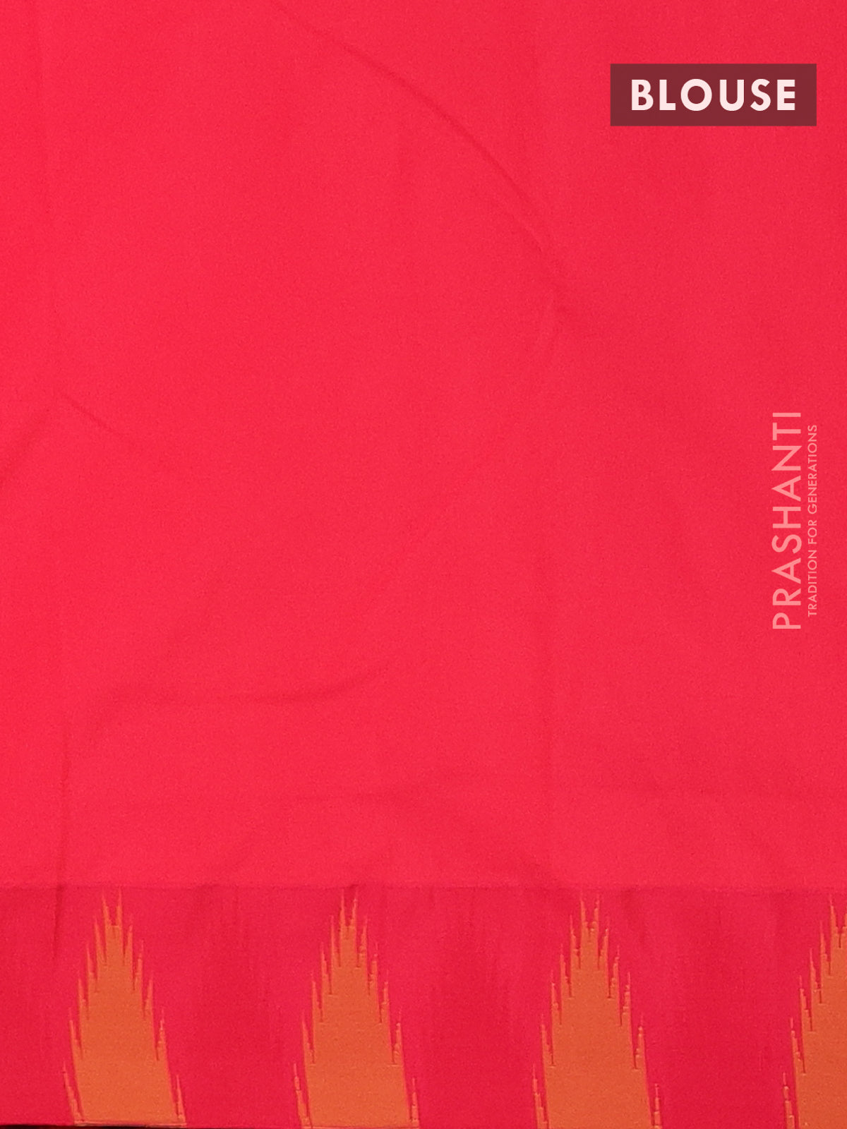 Arani semi silk saree bottle green and pink with plain body and temple design border