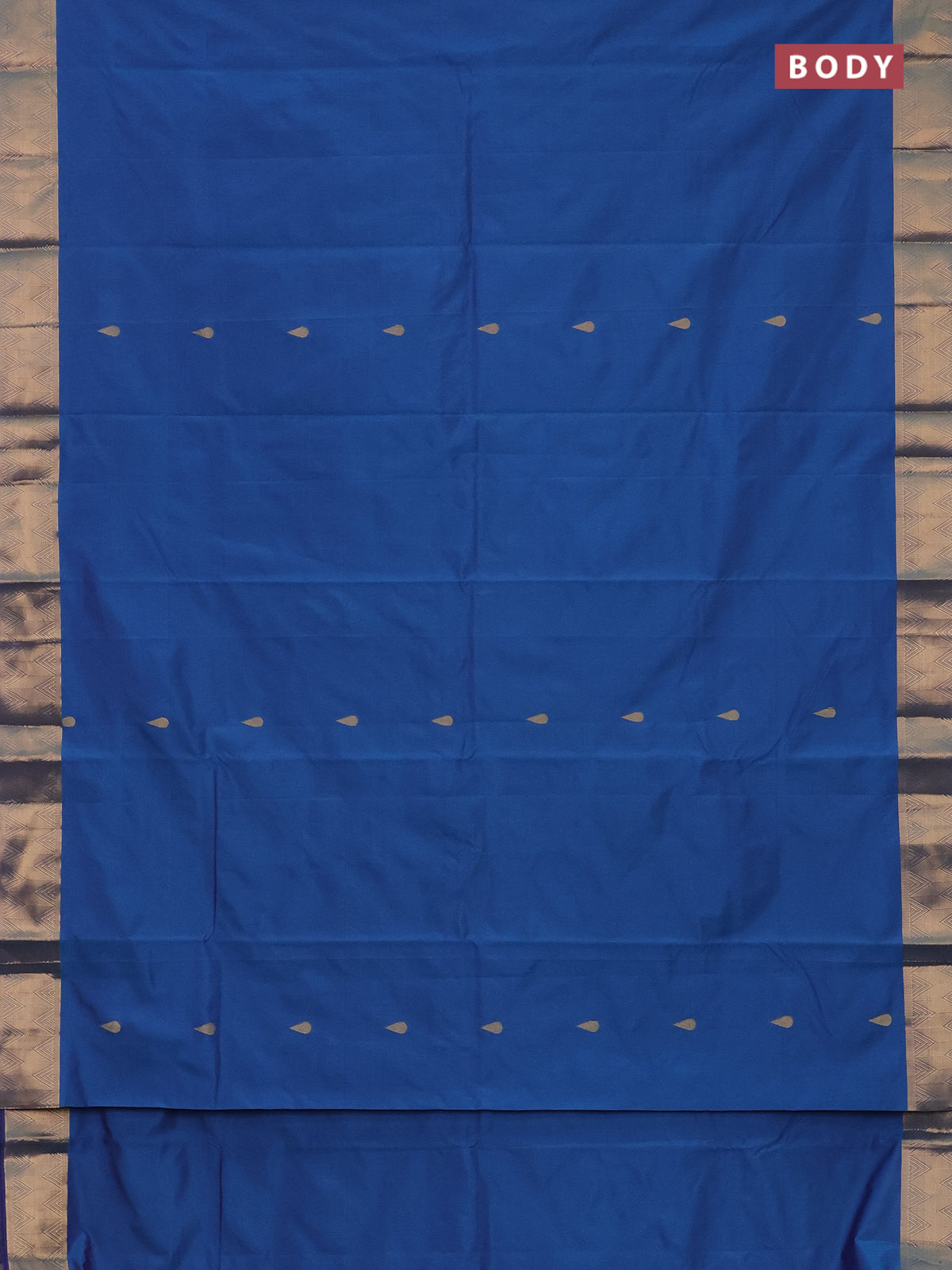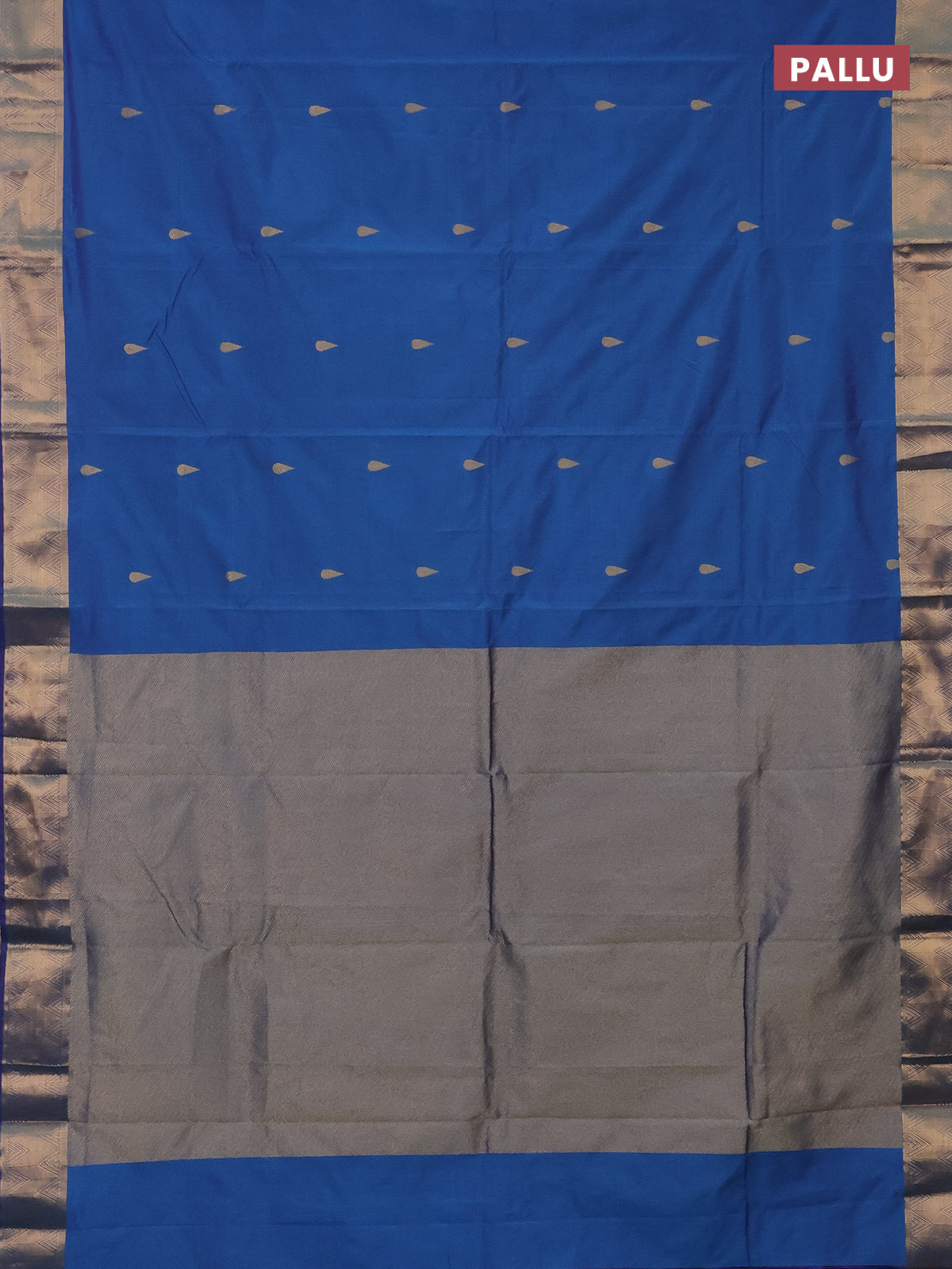 Arani semi silk saree cs blue with zari woven thilak buttas and zari woven border