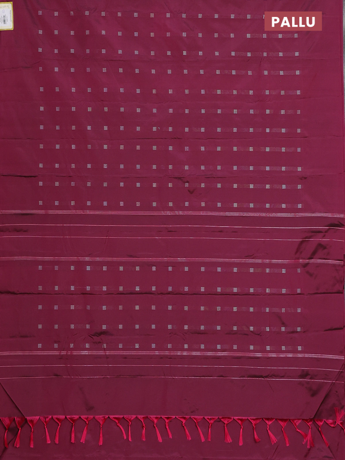 Arani semi silk saree dark magenta pink with silver zari woven buttas in borderless style