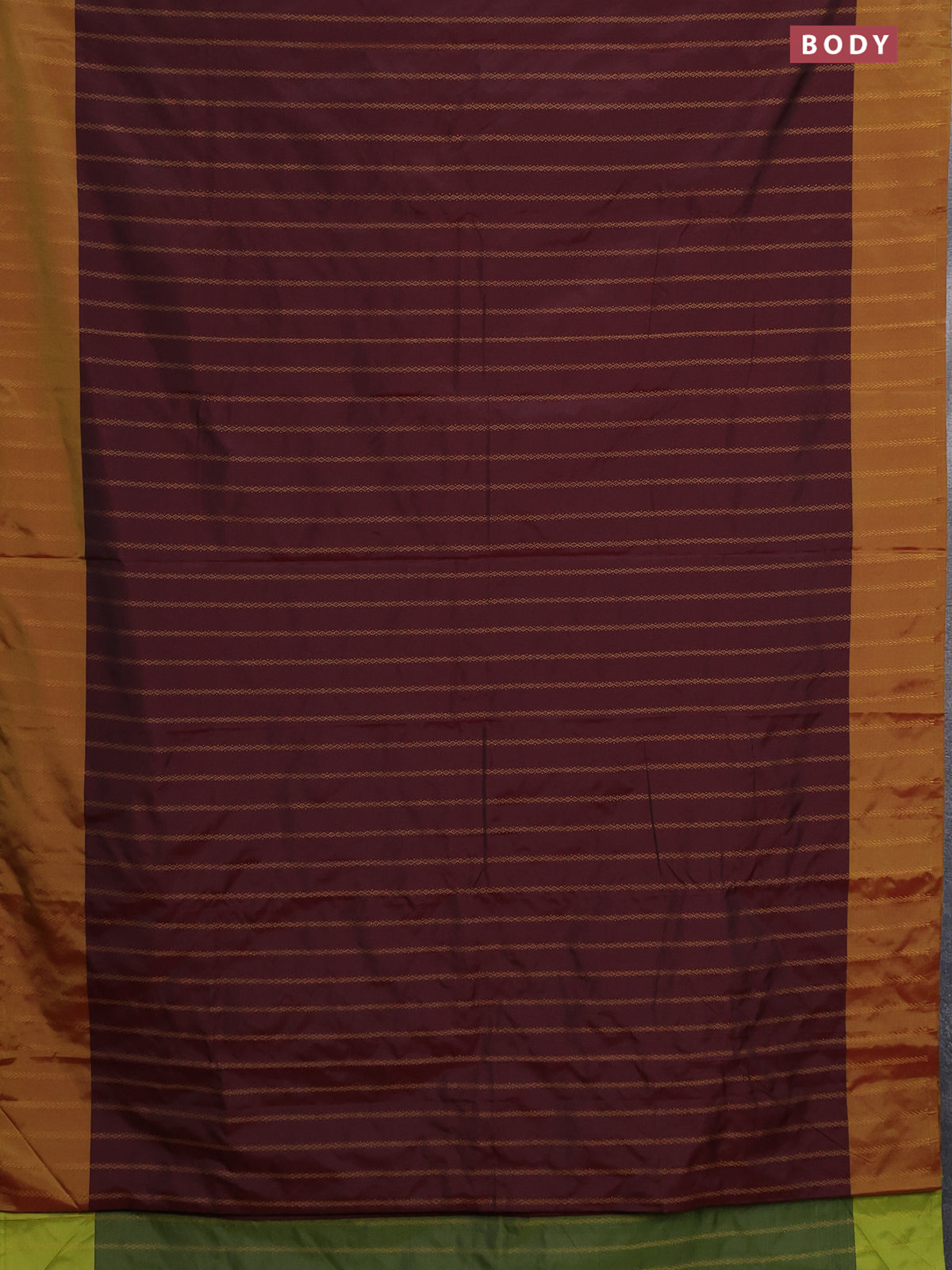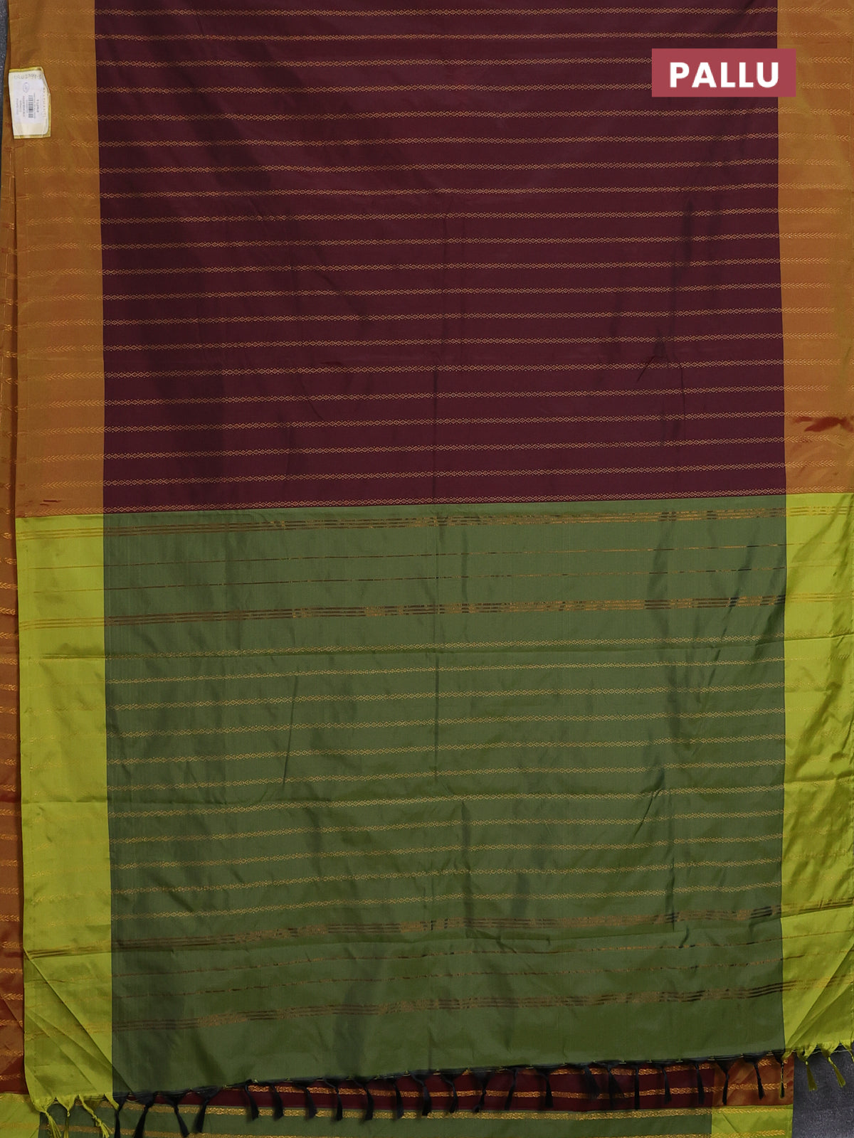 Arani semi silk saree deep maroon and light green with allover zari weaves and zari woven border