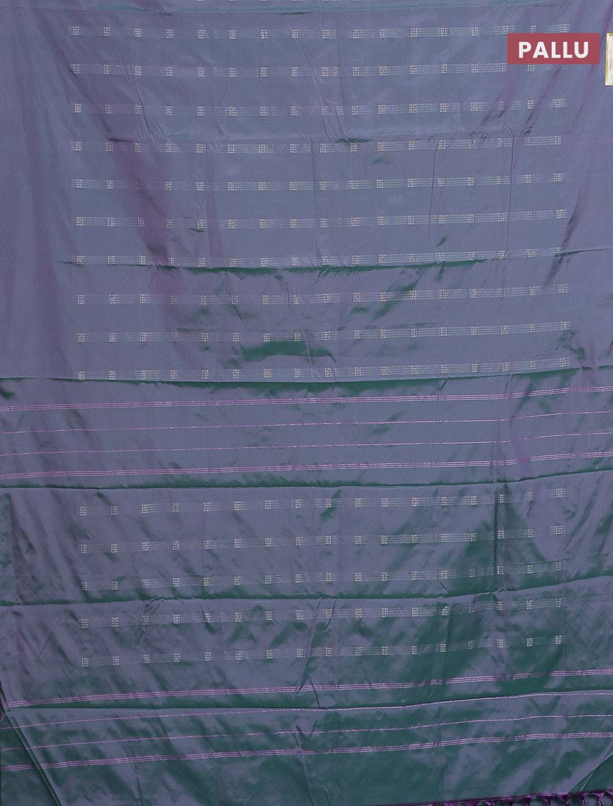 Arani semi silk saree dual shade of greenish purple with silver zari woven buttas in borderless style