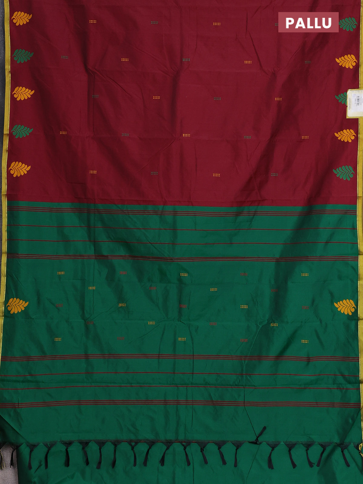 Arani semi silk saree maroon and green with thread woven buttas and piping border