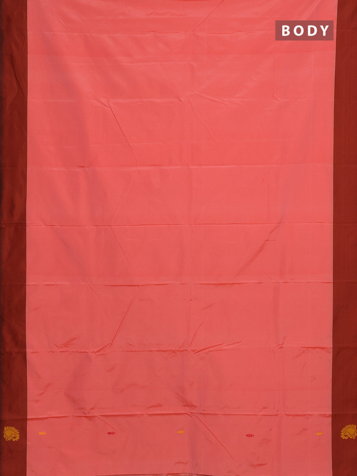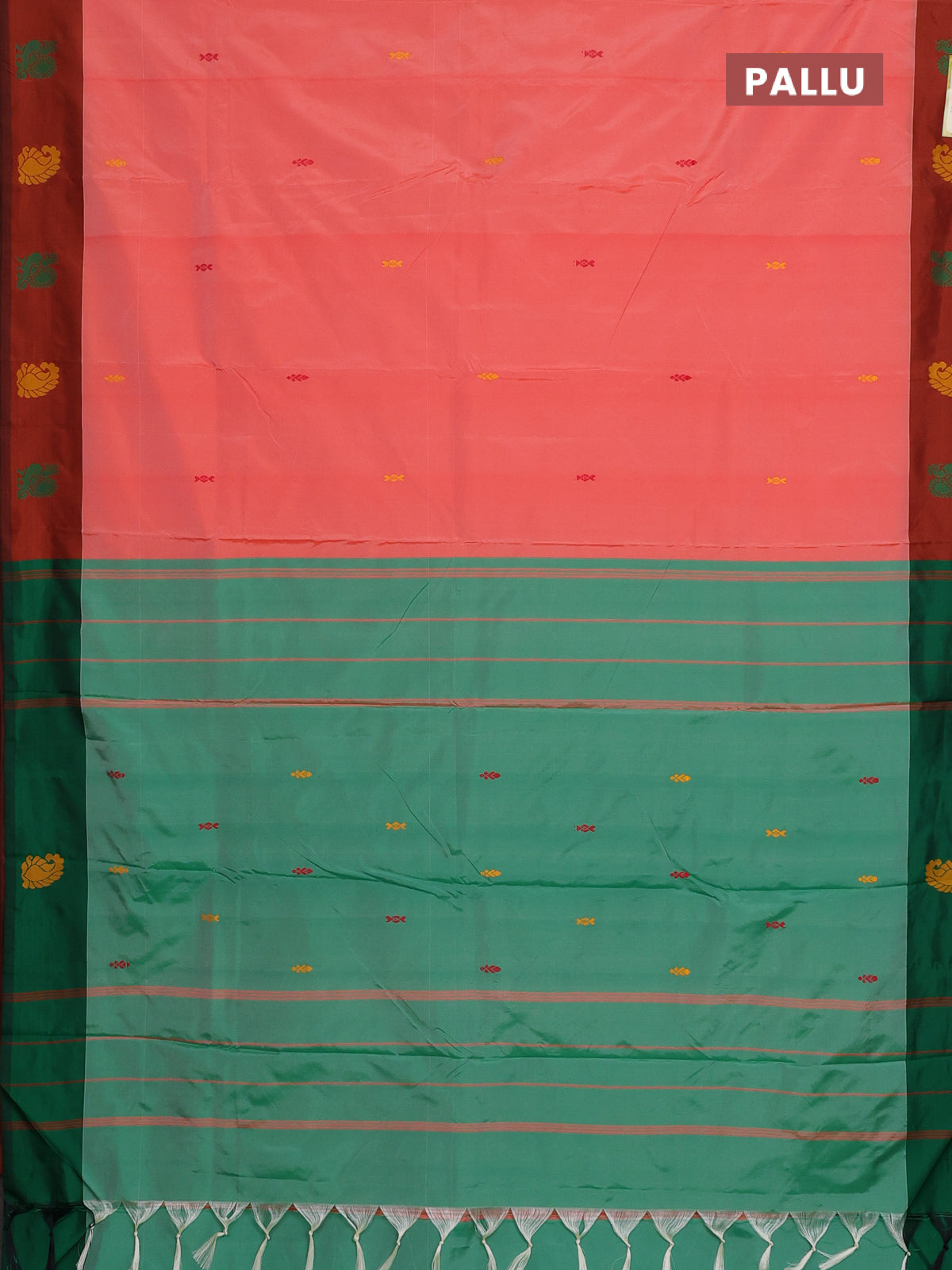 Arani semi silk saree peach shade and green with thread woven buttas and thread woven butta border