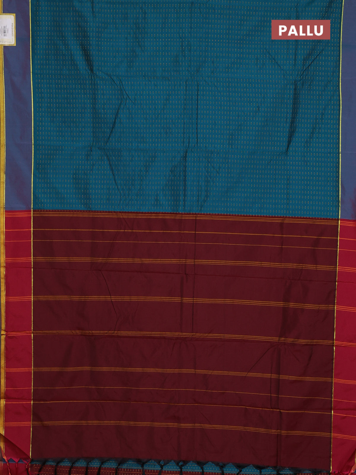 Arani semi silk saree peacock green and maroon with allover thread weaves and rettapet zari woven border`
