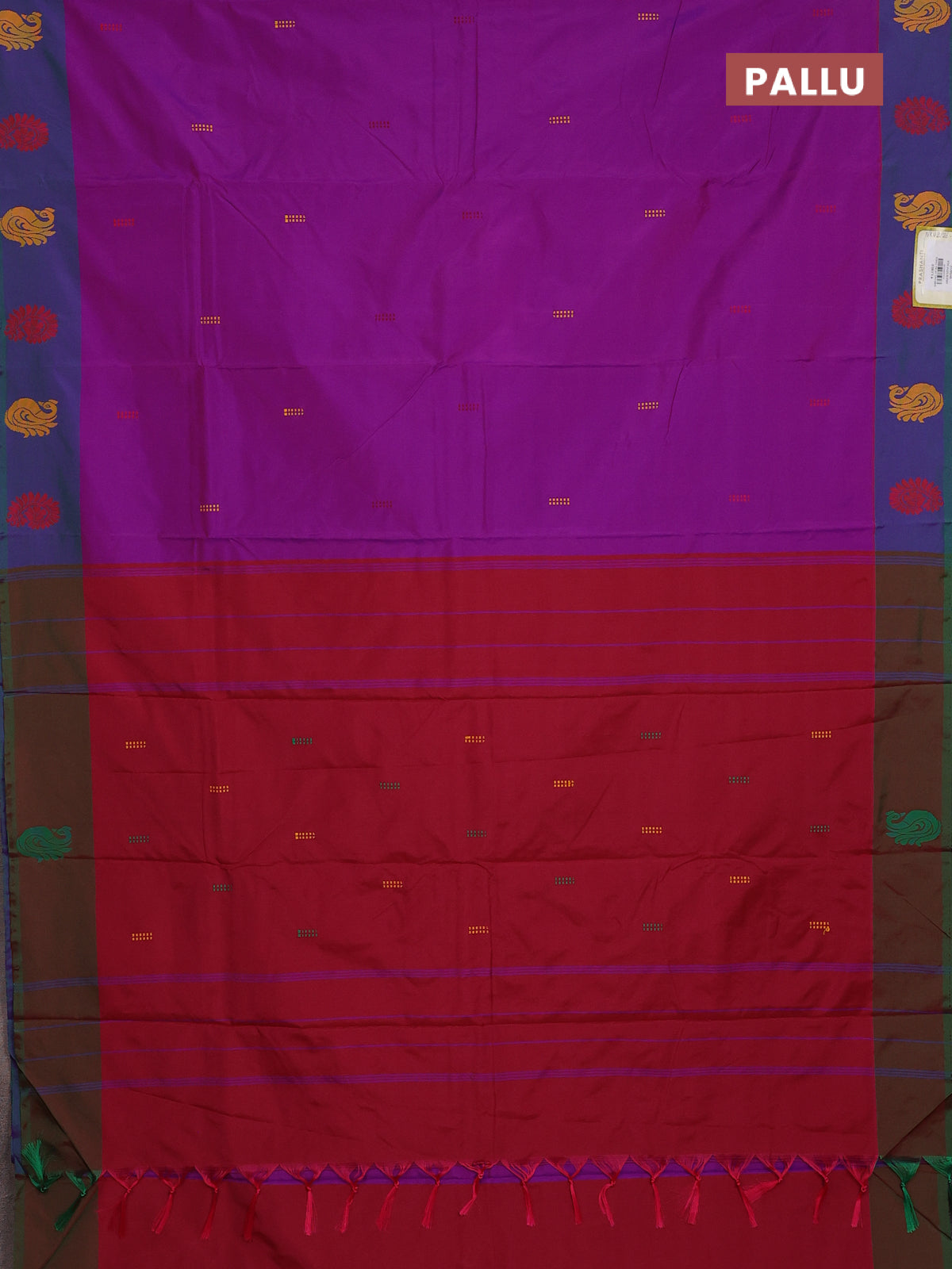 Arani semi silk saree purple and dual shade of greenish maroon with thread woven buttas and thread woven butta border