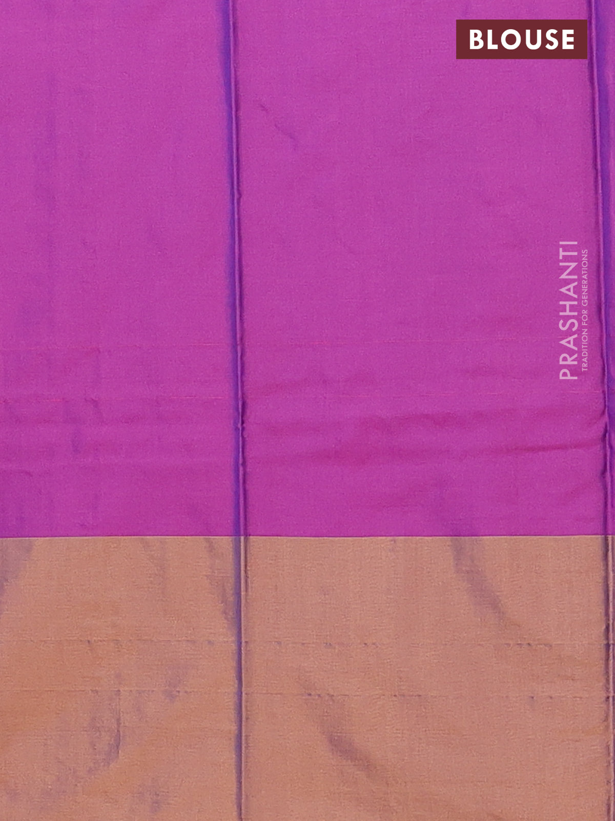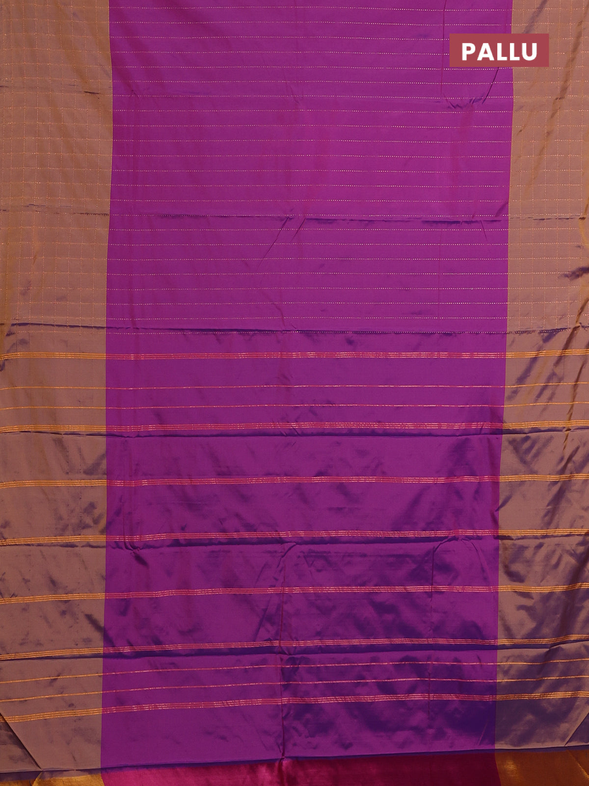 Arani semi silk saree purple and rust shade with allover copper zari weaves and zari checked border