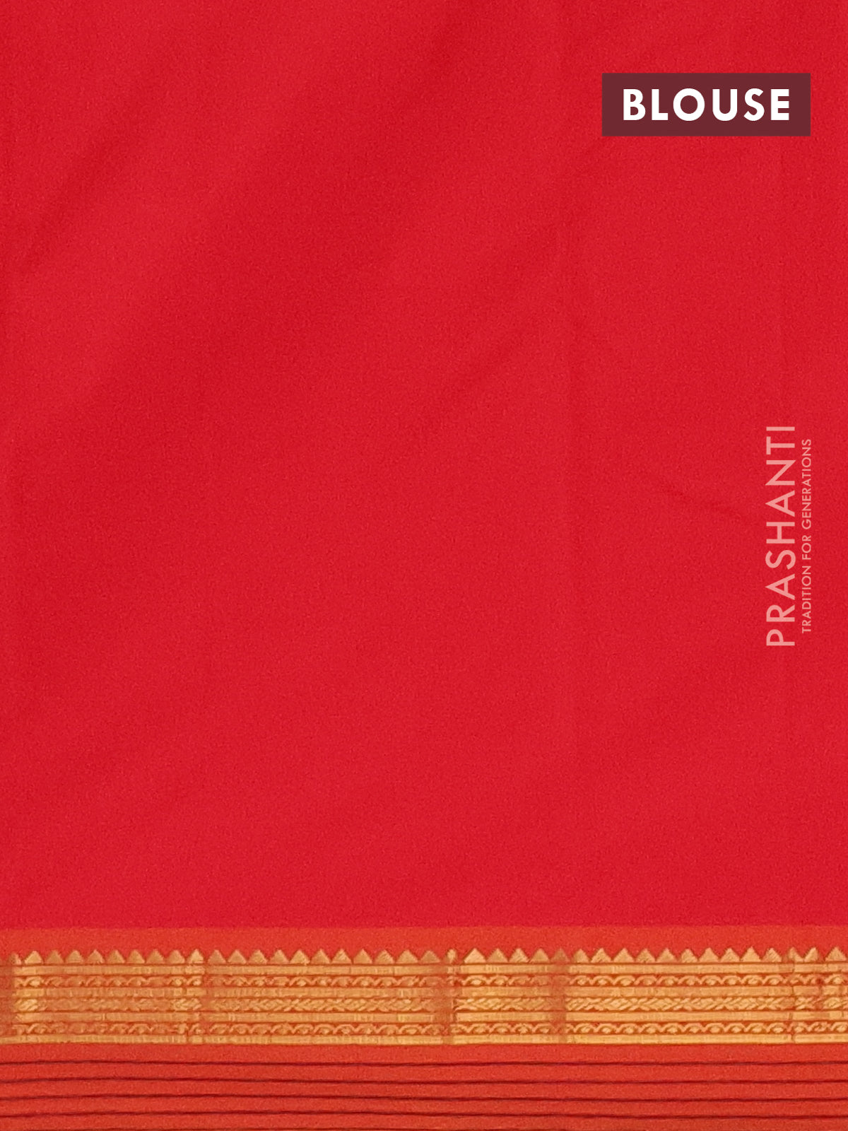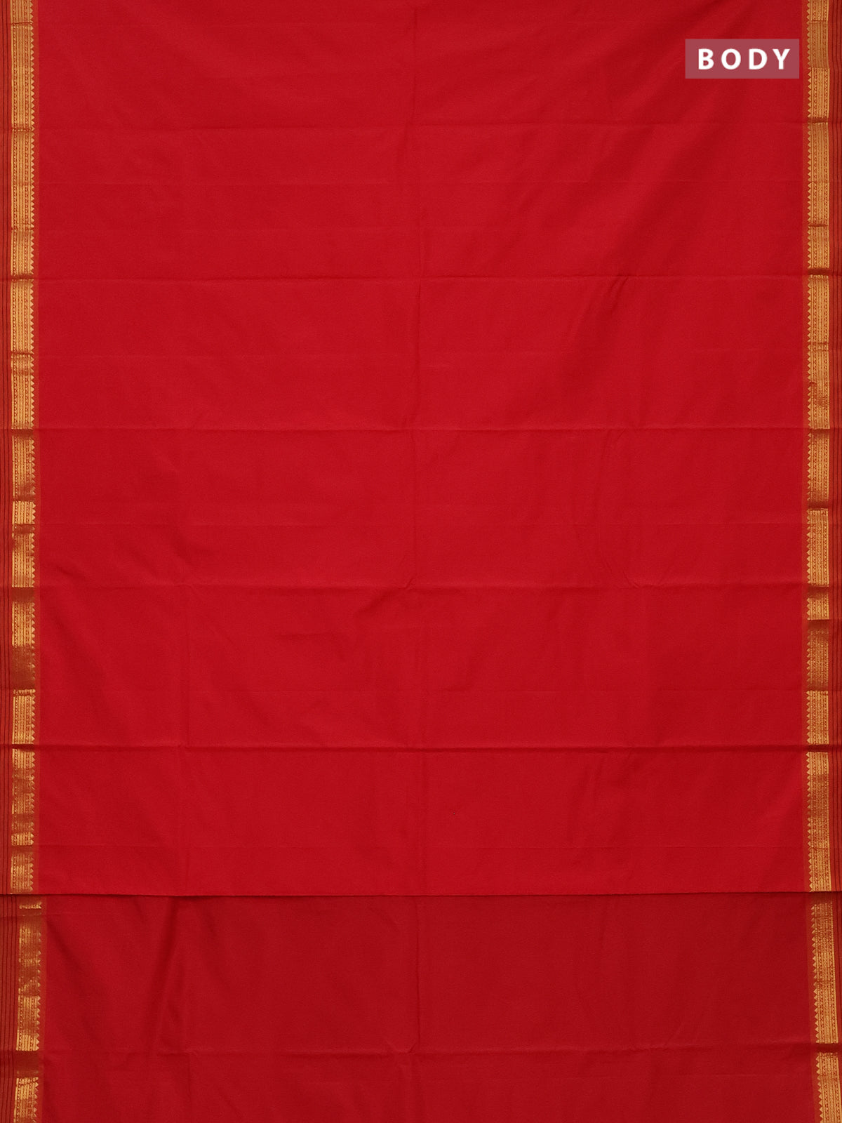 Arani semi silk saree red and dual shade of yellow with plain body and zari woven simple border