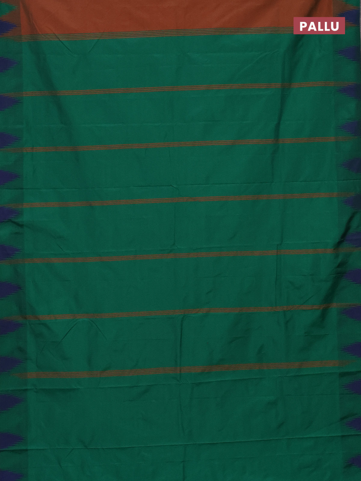 Arani semi silk saree rust shade and green with plain body and temple design border