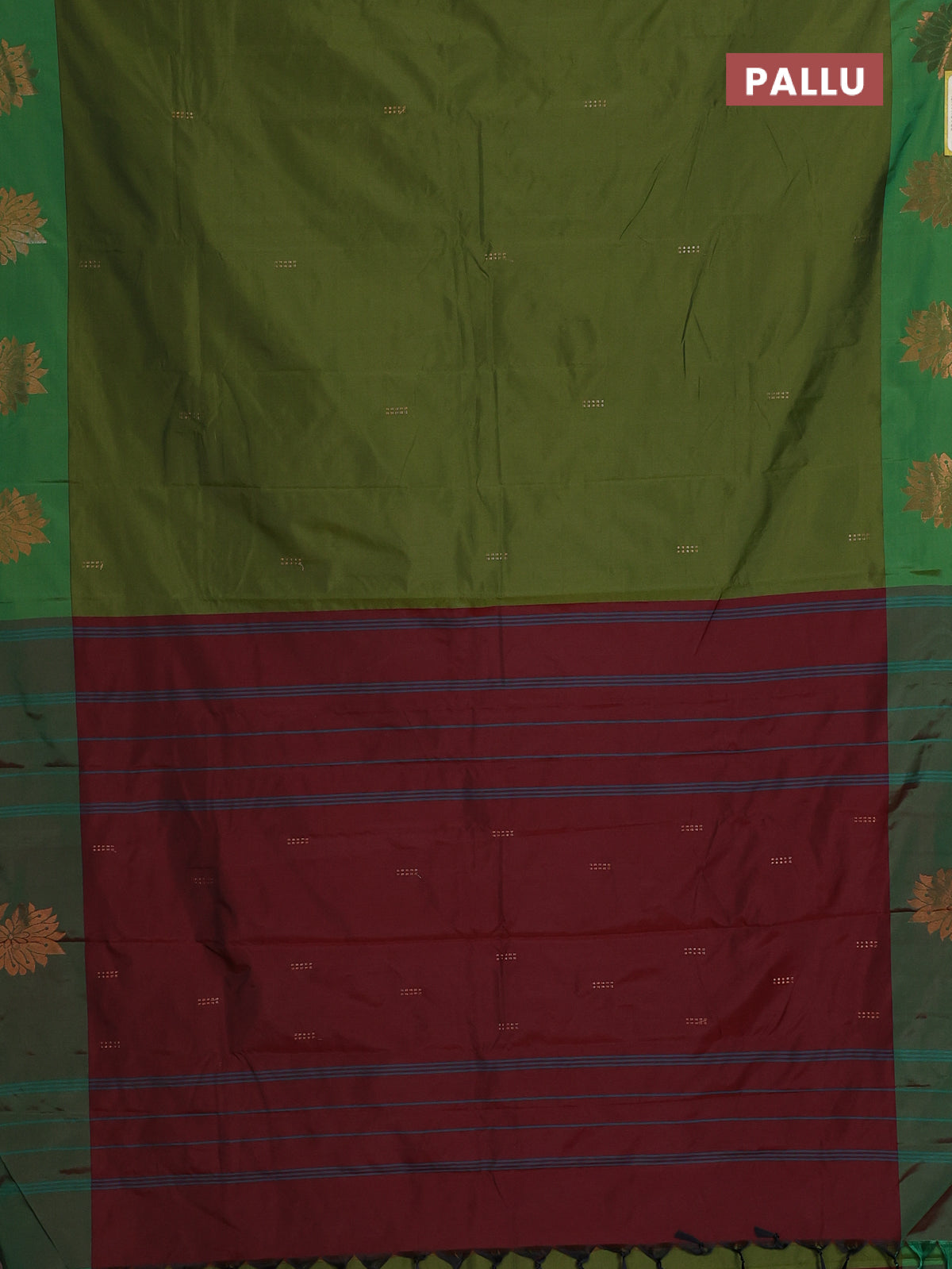 Arani semi silk saree sap green and green with copper zari woven buttas and copper zari woven butta border