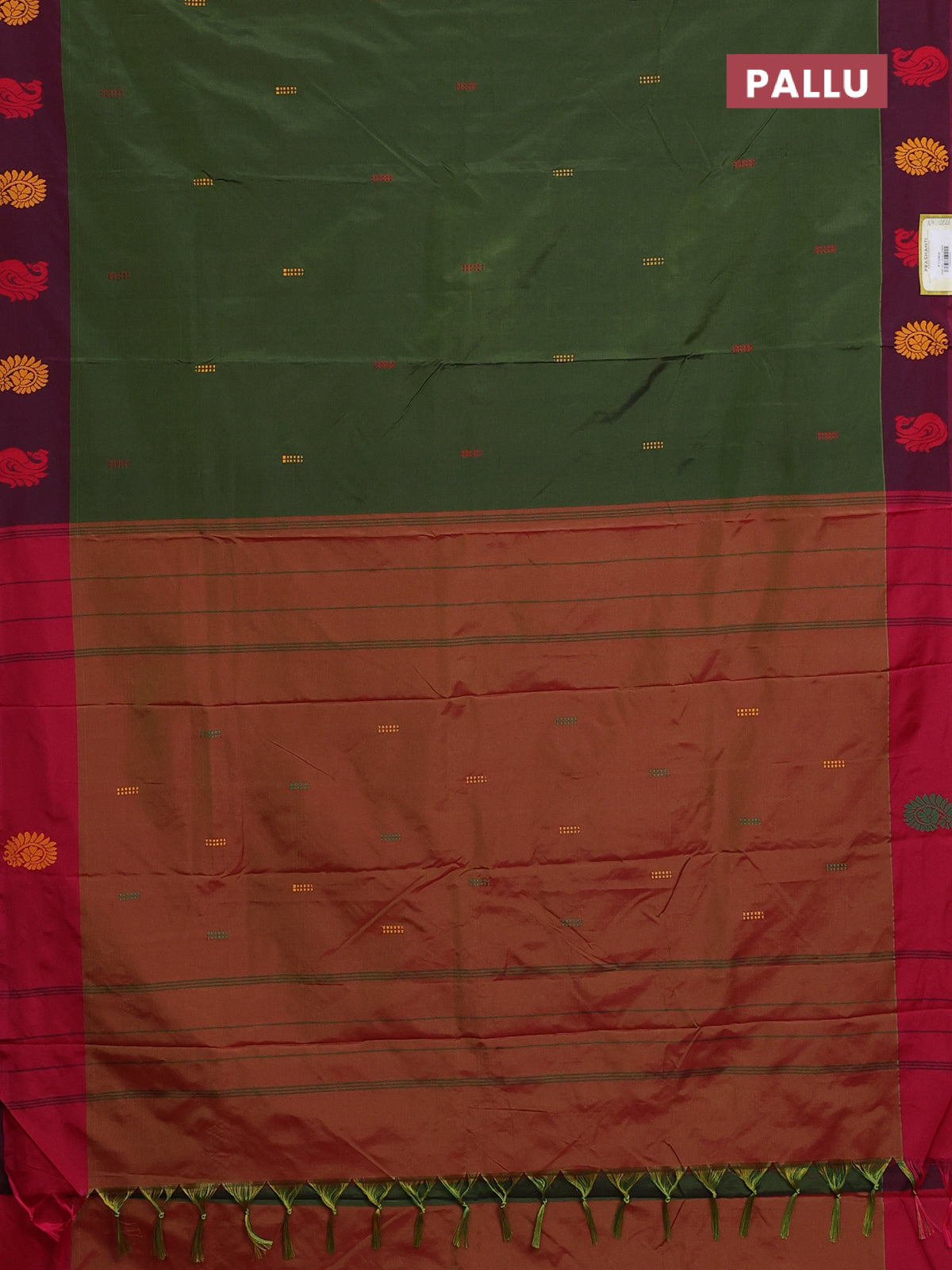 Arani semi silk saree sap green and pink with thread woven buttas and thread woven butta border