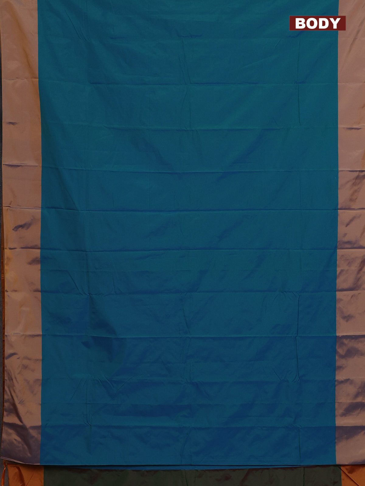 Arani semi silk saree teal blue shade and dual shade of mustard with zari woven buttas and paisley zari woven butta border