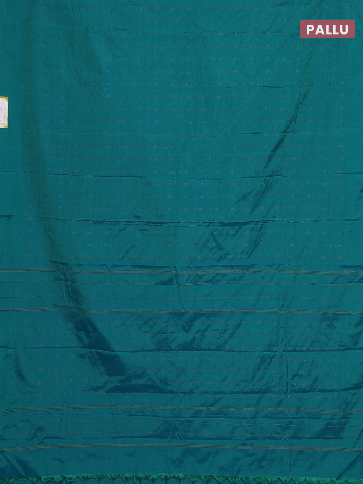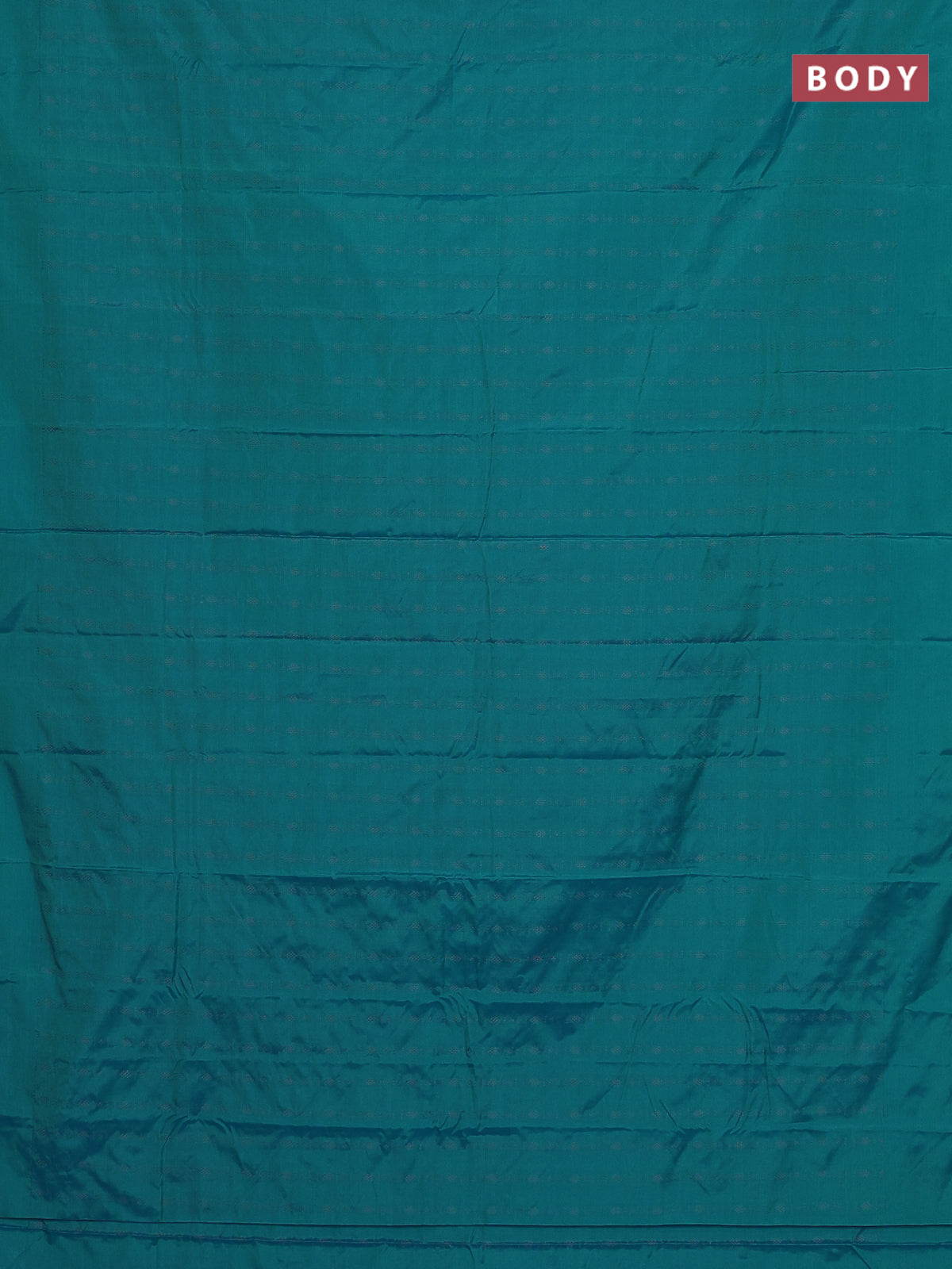 Arani semi silk saree teal blue with allover copper zari weaves in borderless style