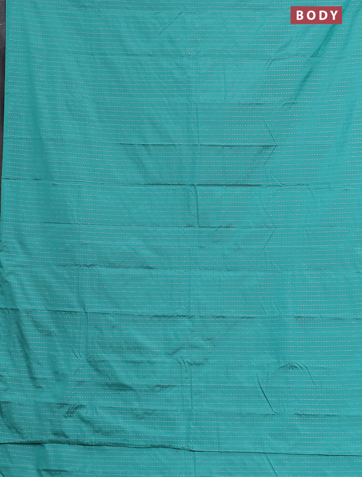 Arani semi silk saree teal green with allover silver zari weaves in borderless style