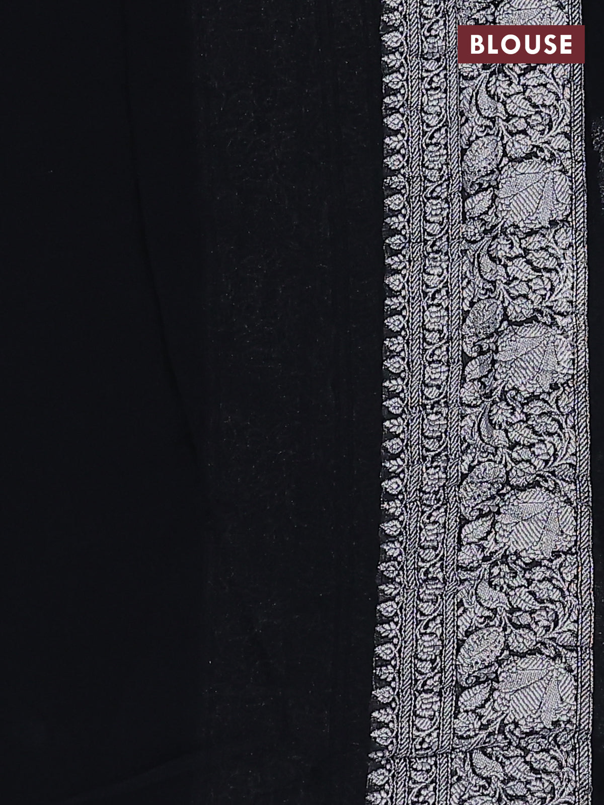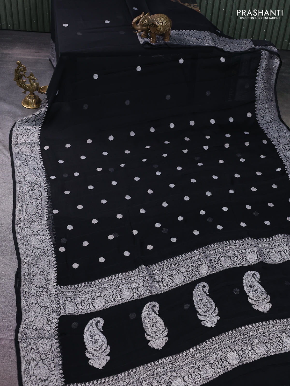 Banarasi chiffon silk saree black with silver zari woven coin buttas and silver zari woven border