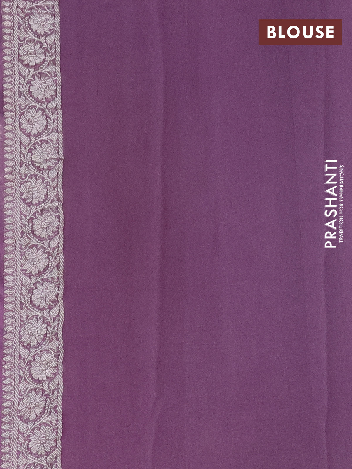 Banarasi chiffon silk saree pastel purple with silver zari woven buttas and silver zari woven border
