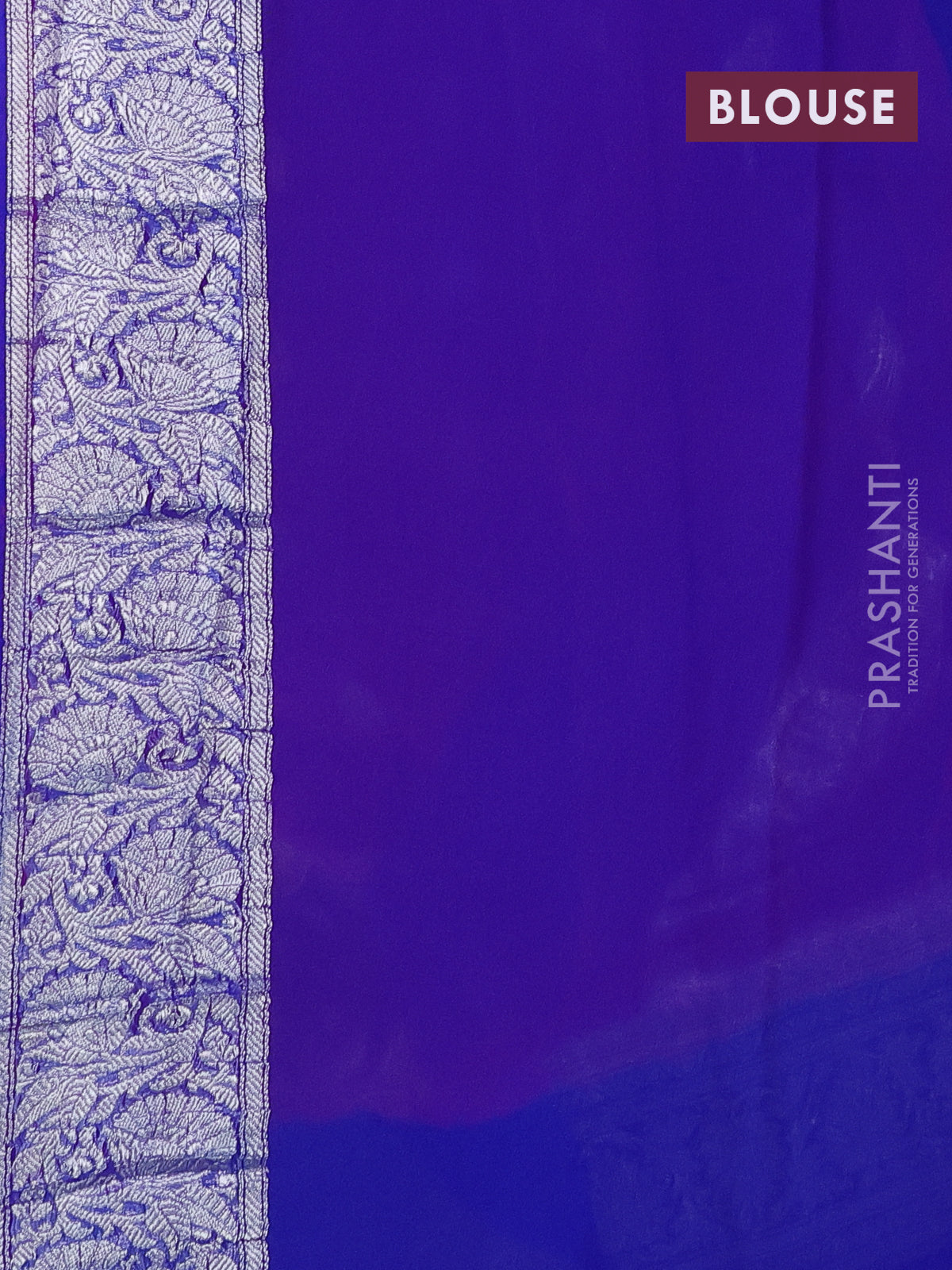 Banarasi chiffon silk saree pink and blue with silver zari woven buttas and floral silver zari woven border