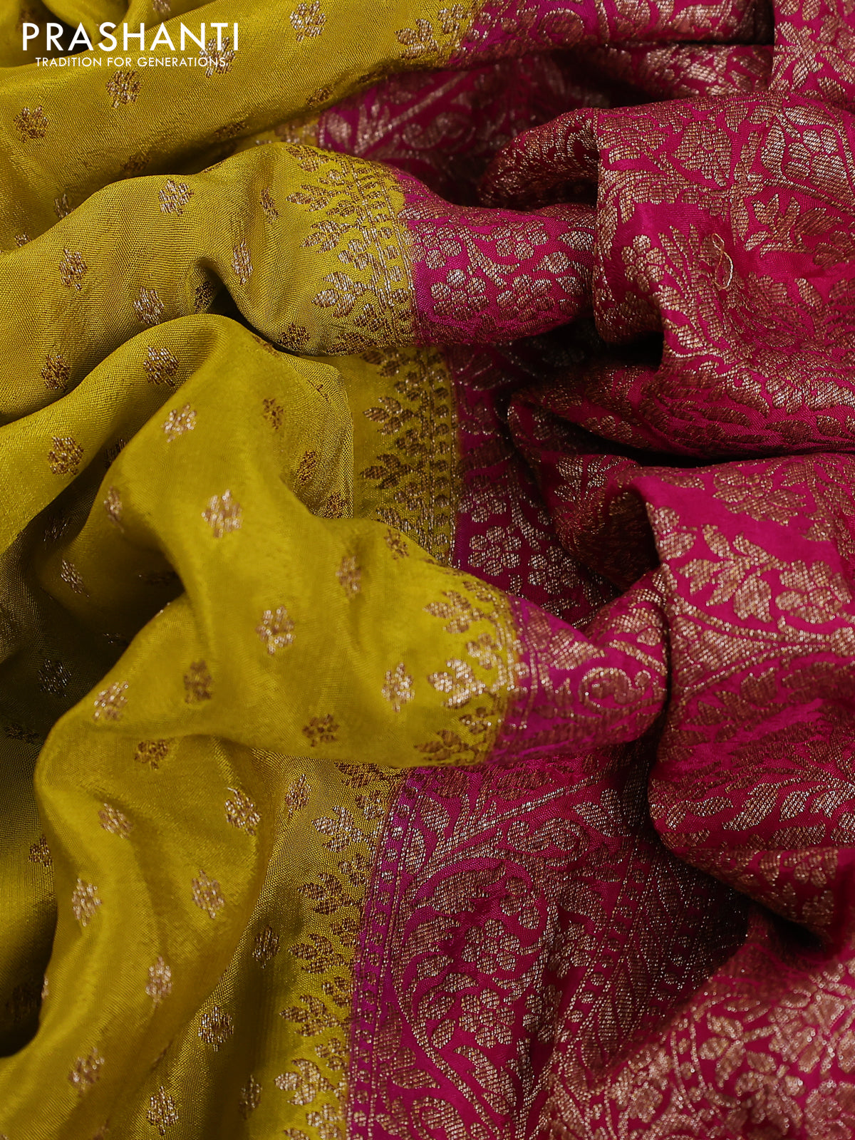 Banarasi crepe partly saree lime yellow and pink with woven buttas and woven border