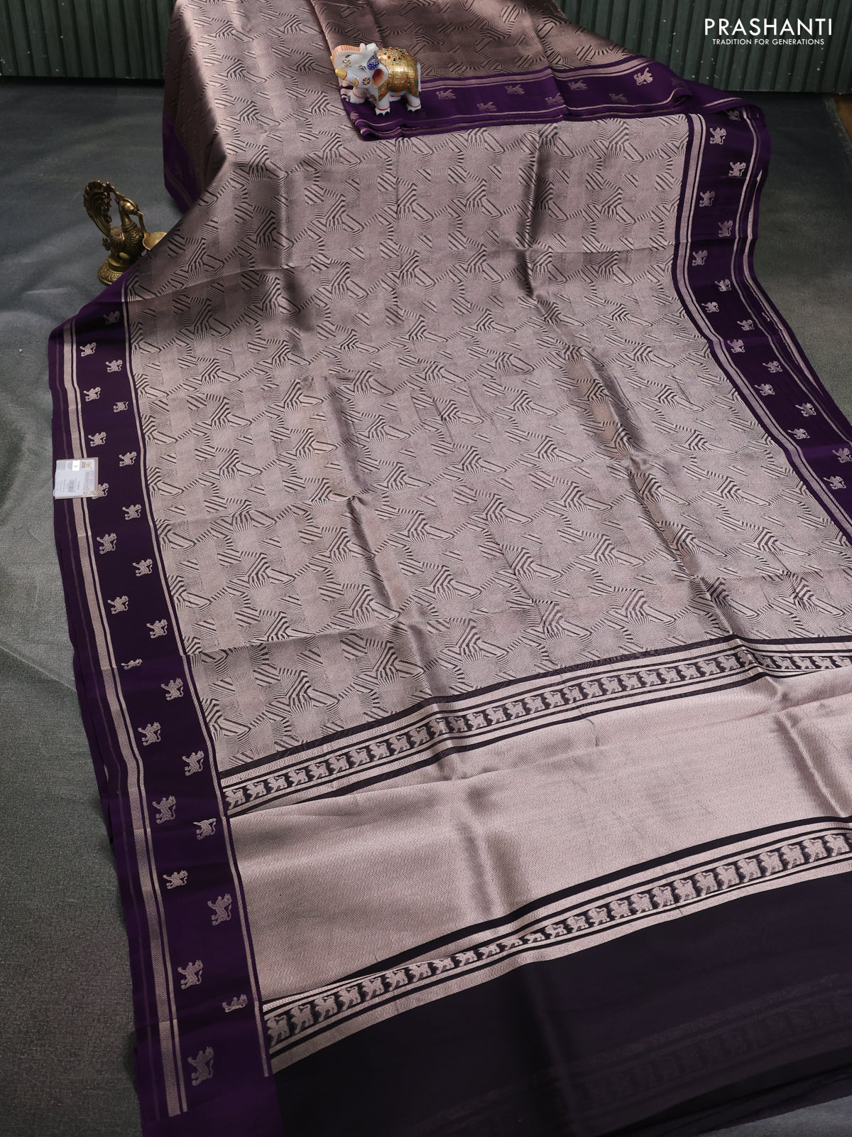 Banarasi katan silk saree violet with allover silver zari woven brocade weaves and zari woven butta border