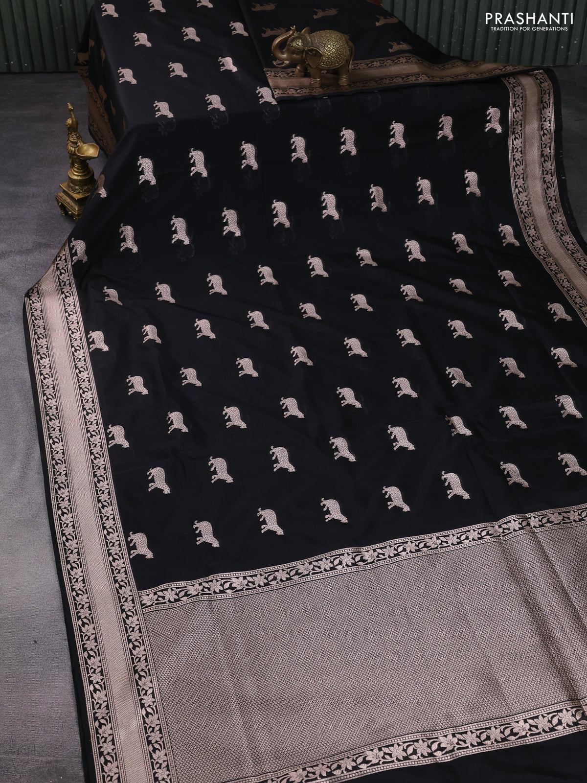 Banarasi semi katan saree black with zari woven buttas and zari woven border