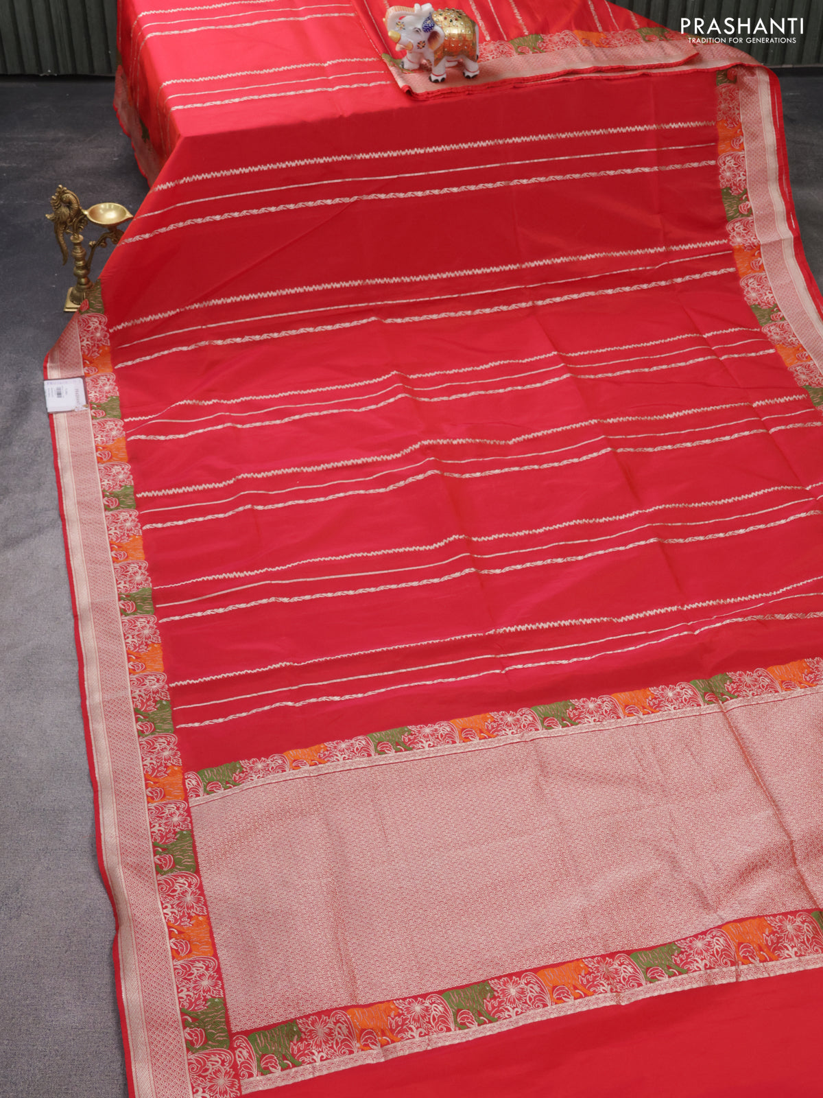 Banarasi semi katan silk saree red with allover zari weaves and rich zari woven border