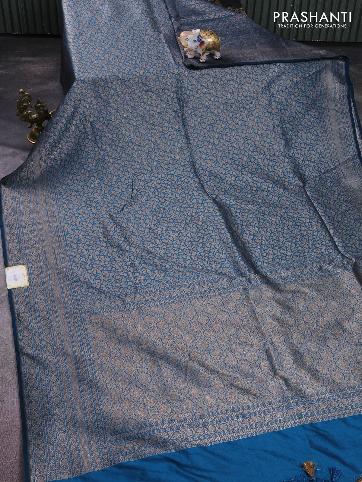 Banarasi semi silk saree cs blue with allover thread & zari weaves and woven border