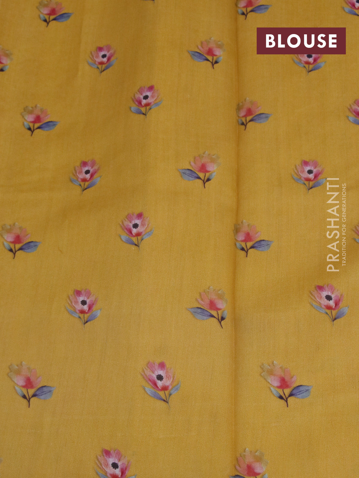 Banarasi silk saree mustard yellow with allover zari woven brocade weaves and floral digital printed border