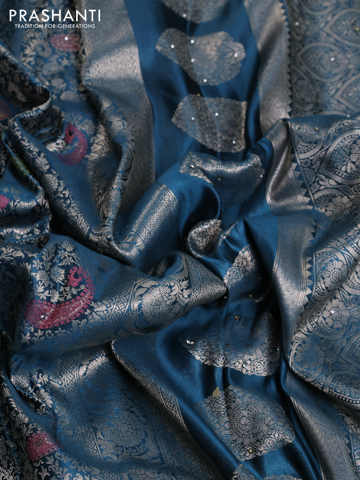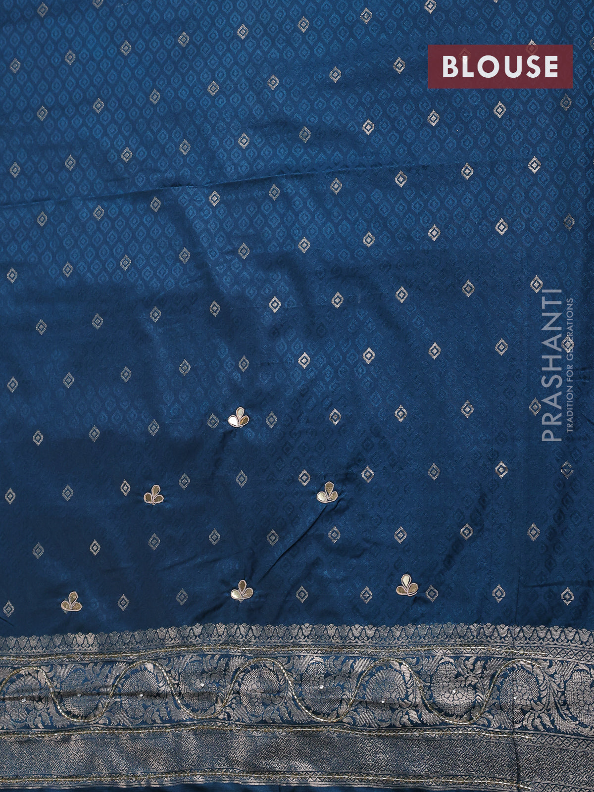 Banarasi silk saree peacock blue with allover zari woven brocade weaves and zaridosi gotapatti work border