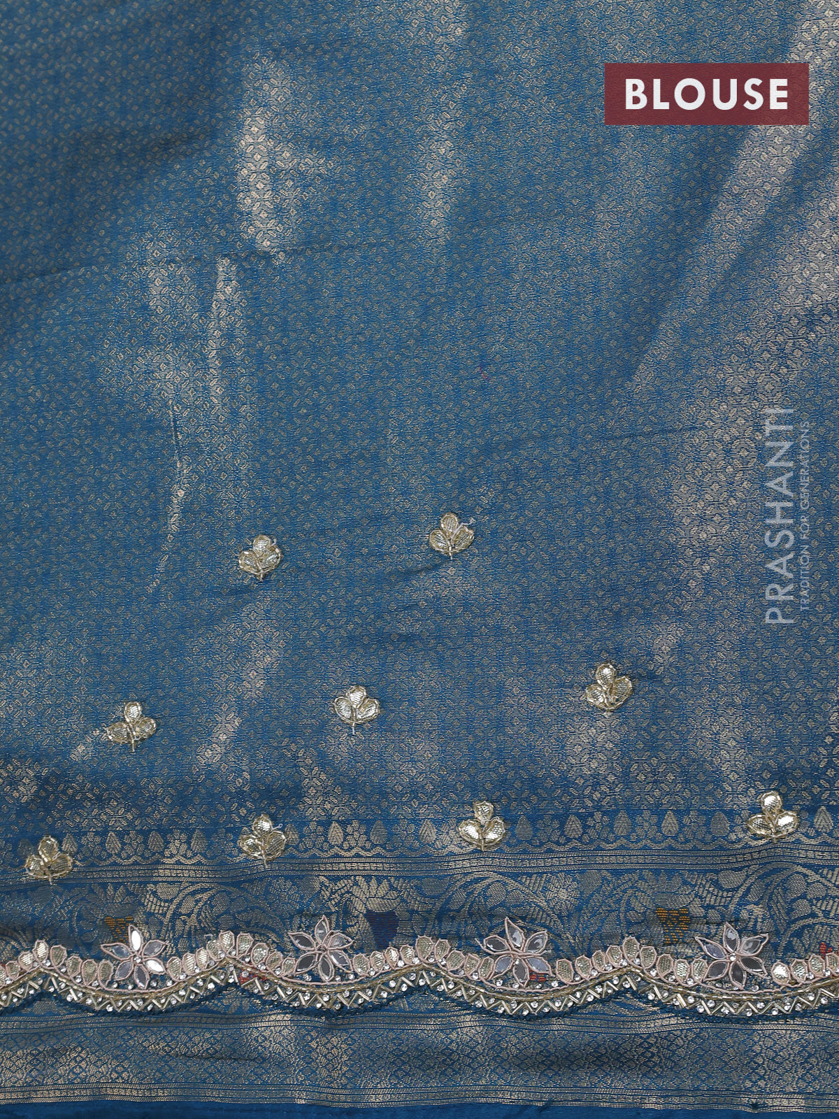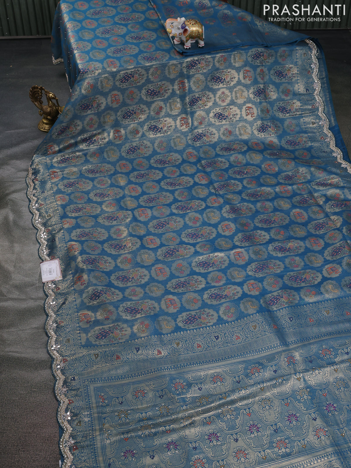 Banarasi silk saree peacock blue with allover zari woven brocade weaves and zaridosi gotapatti work border