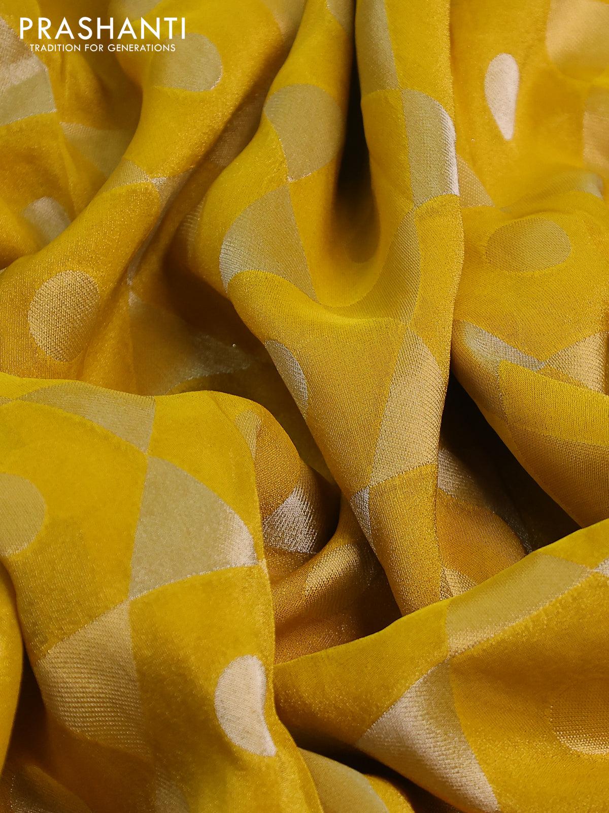 Banarasi tissue saree yellow and red with allover zari woven geometric wevaes and lace work border