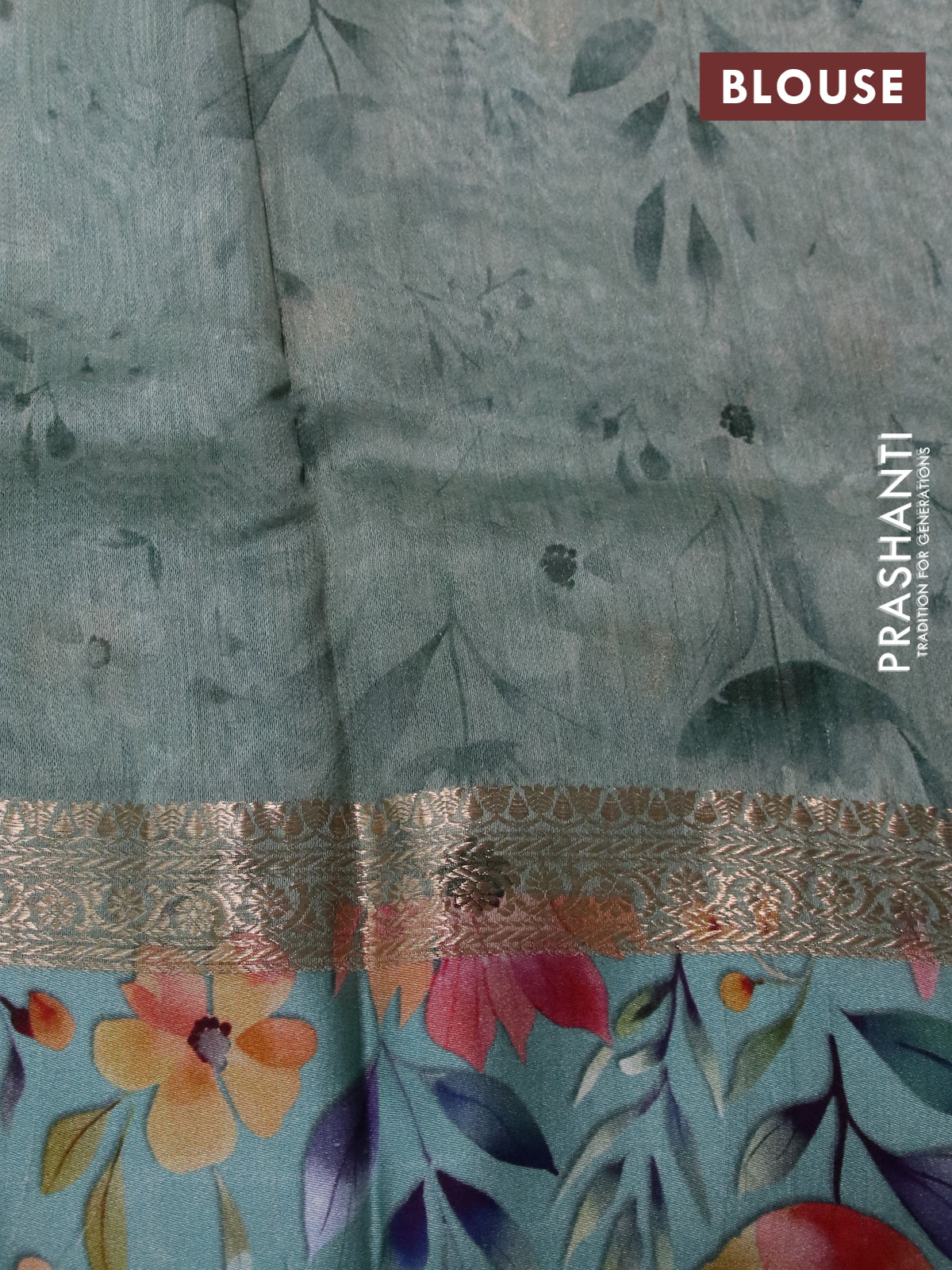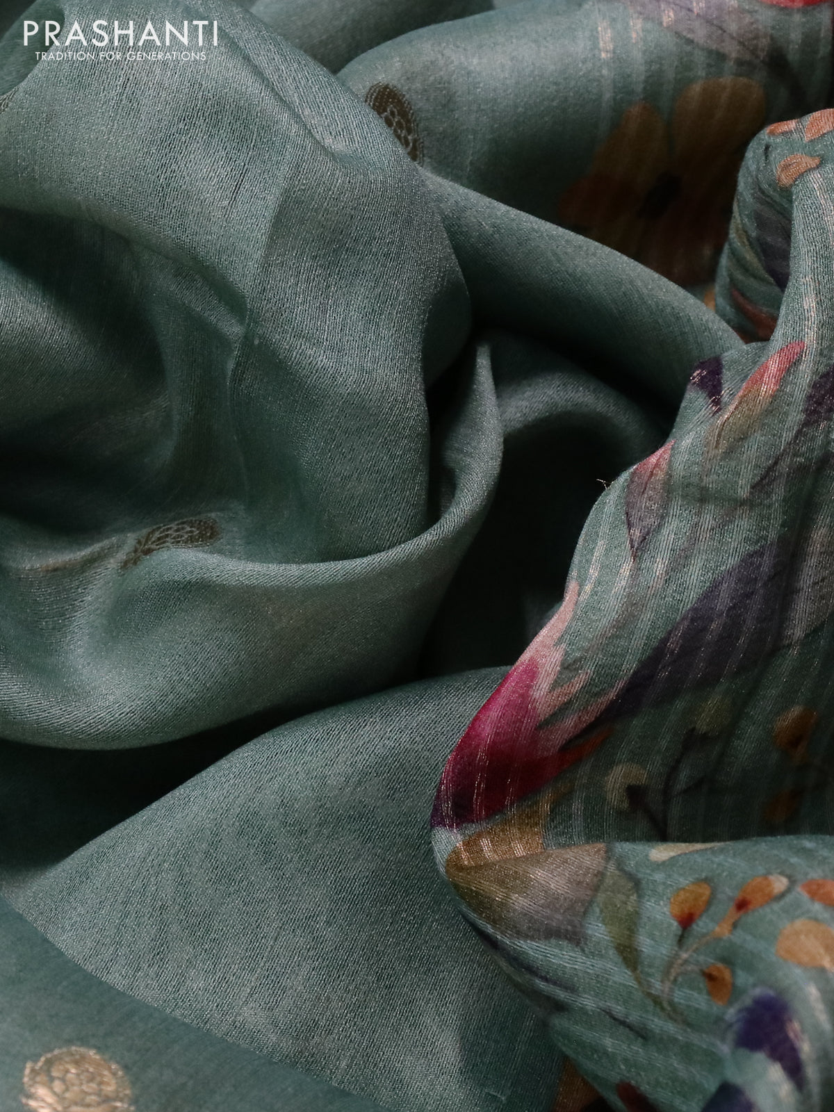 Banarasi tussar silk saree pastel green with zari woven buttas and zari woven floral digital printed border