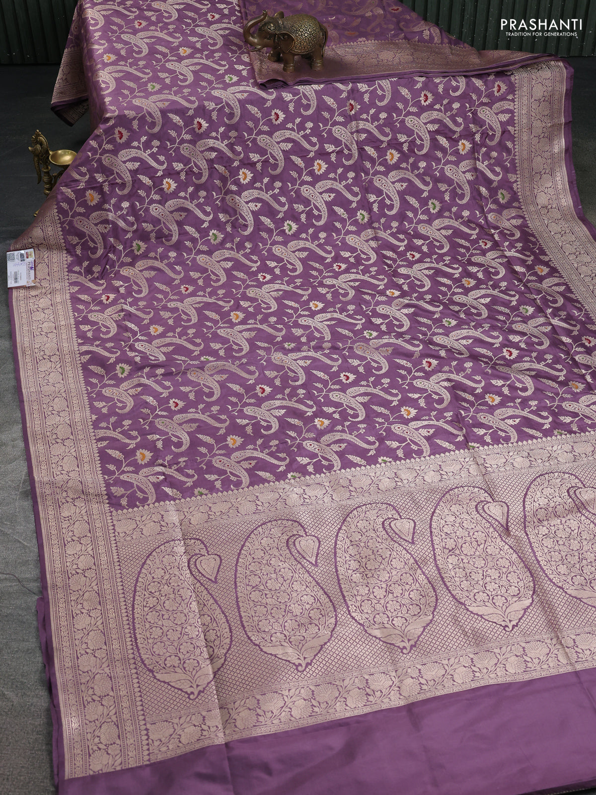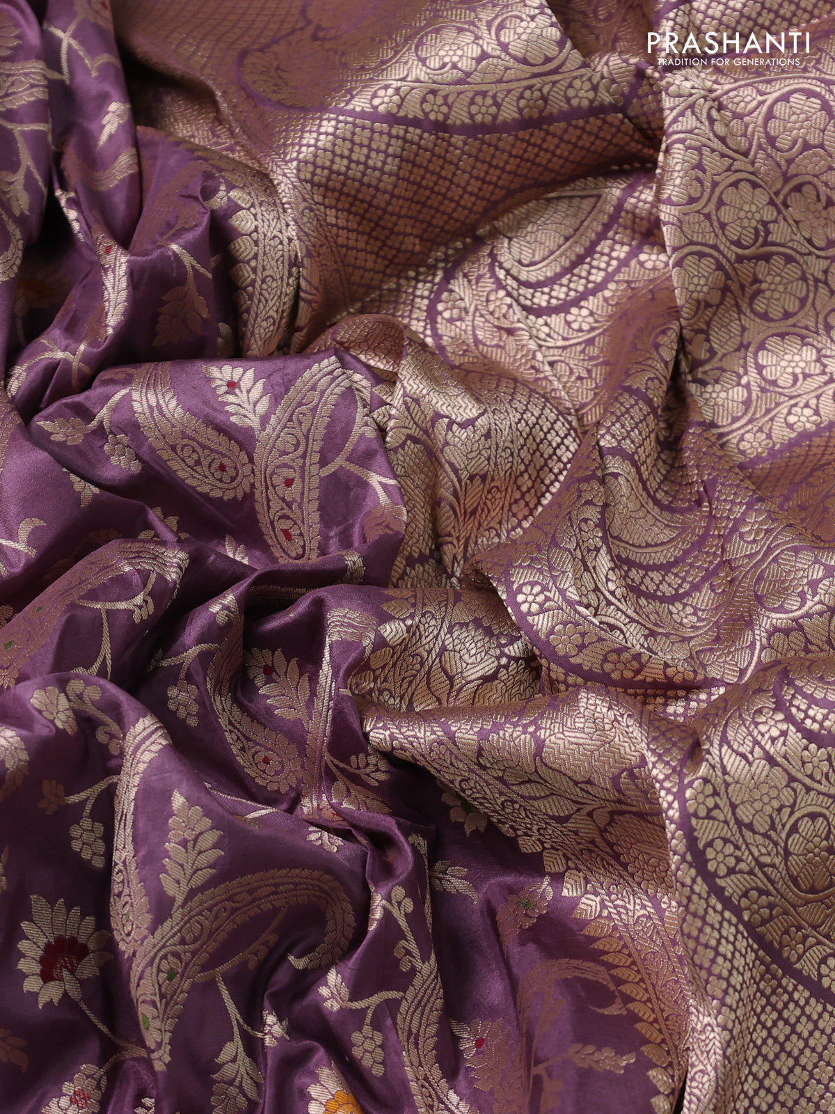 Banarasi uppada silk saree pastel lavender with allover zari woven brocade weaves and zari woven border