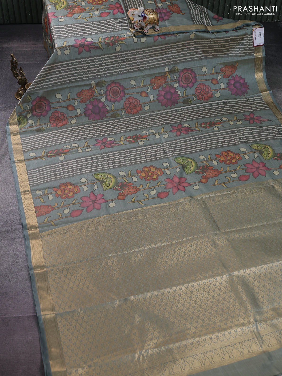 Bangalori semi silk saree grey shade with allover ikat weaves and zari woven border
