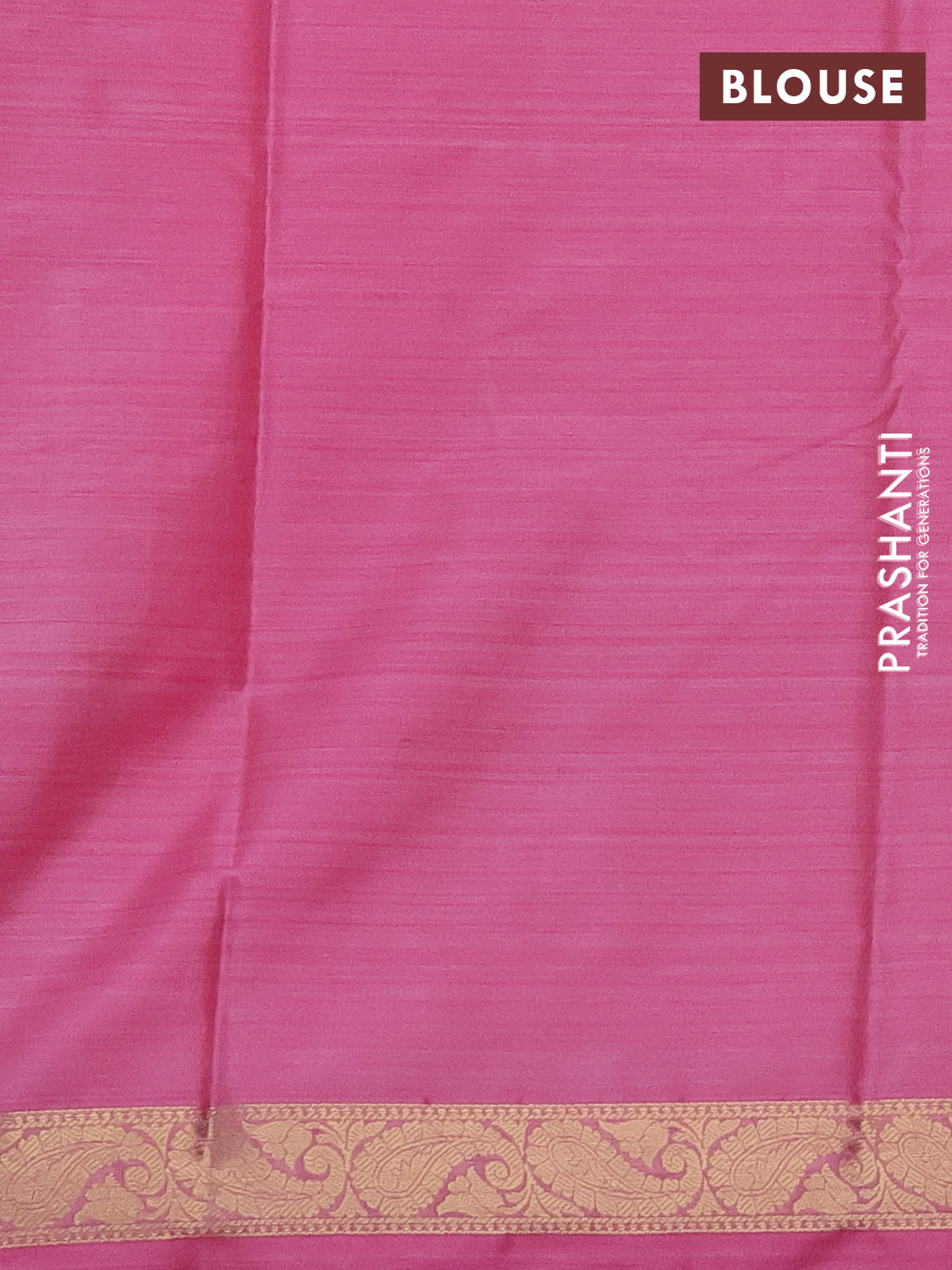 Bangalori semi silk saree light green and pink with allover ikat weaves and zari woven border