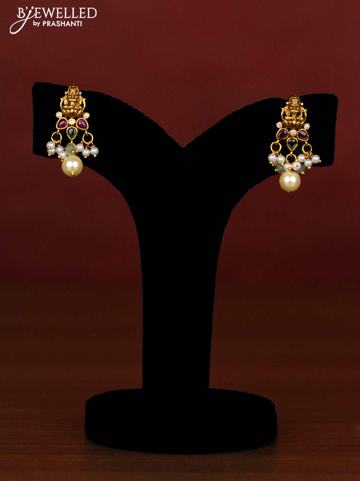 Beaded multilayer mint green necklace lakshmi design with cz stones