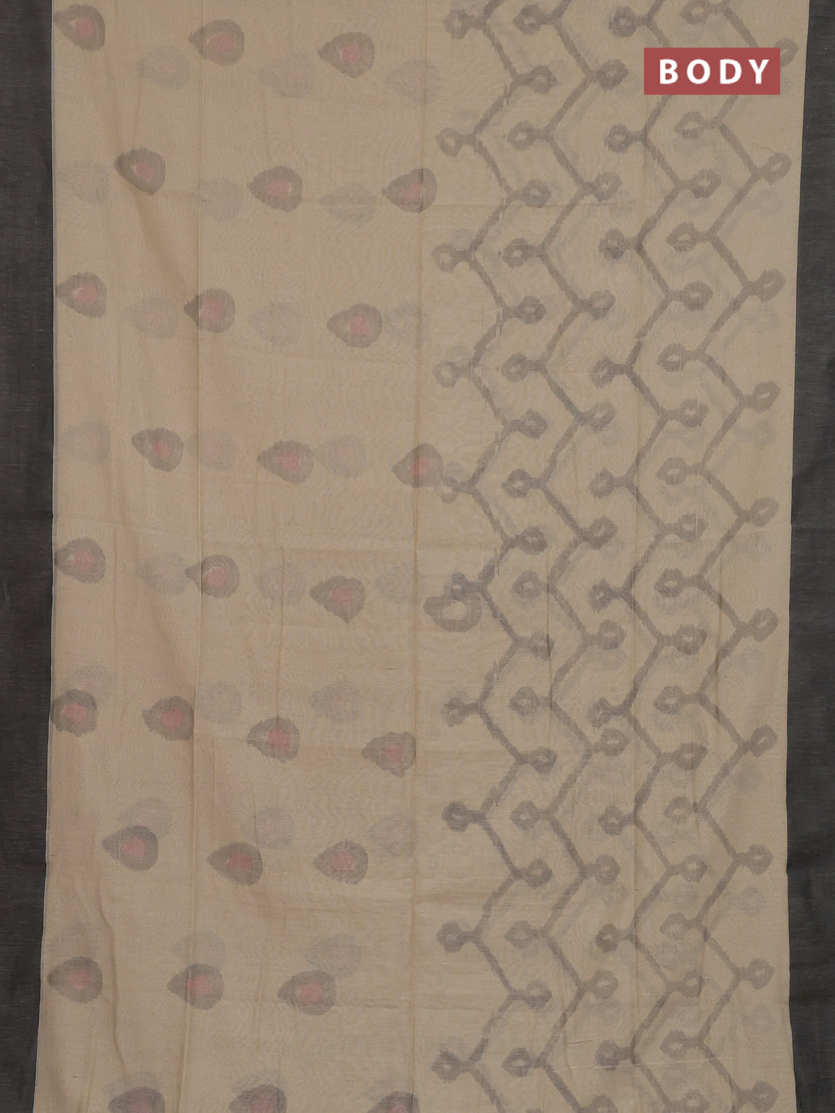Bengal soft cotton saree beige and black with allover weaves and simple border