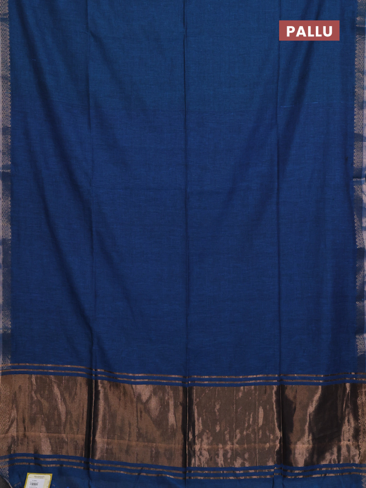 Bengal soft cotton saree cs blue and deep maoon with plain body and zari woven border