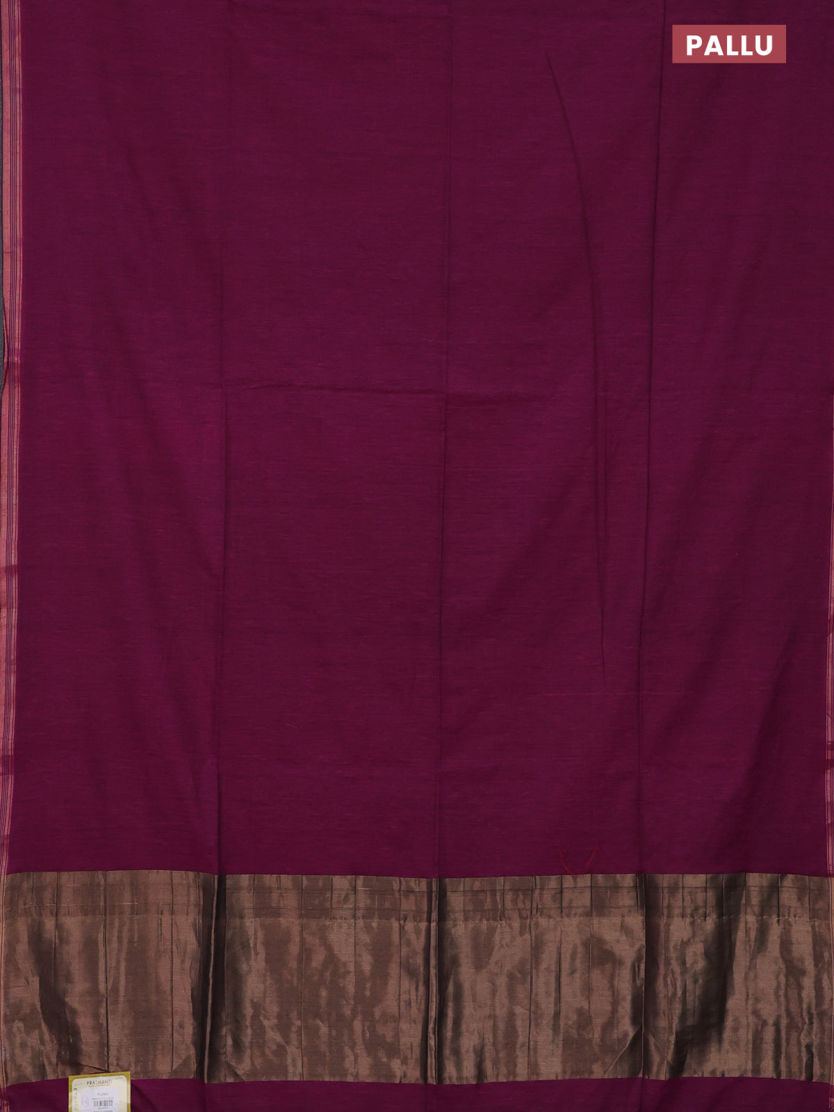 Bengal soft cotton saree dark magenta pink and blue with plain body and zari woven border