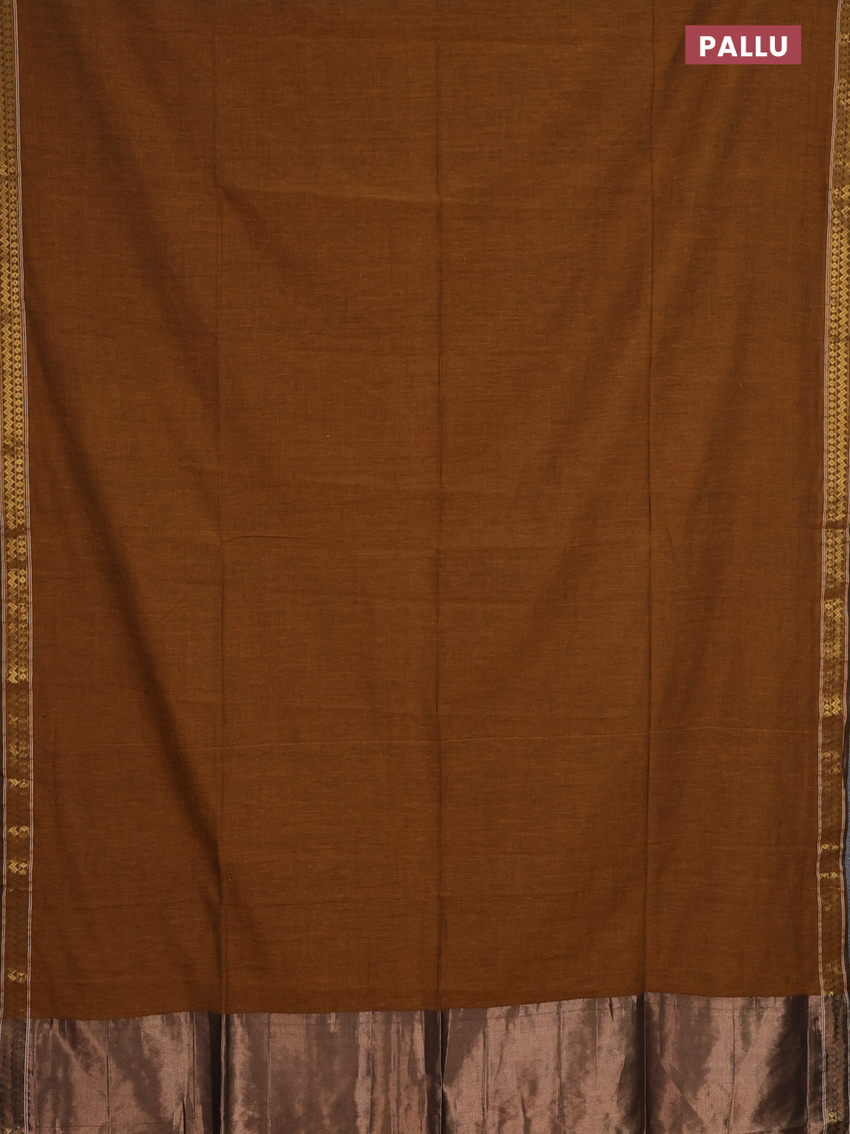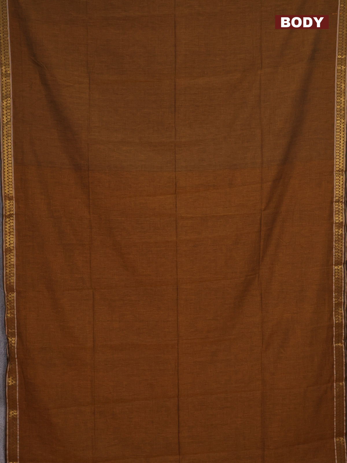 Bengal soft cotton saree dark mustard and violet with plain body and zari woven border