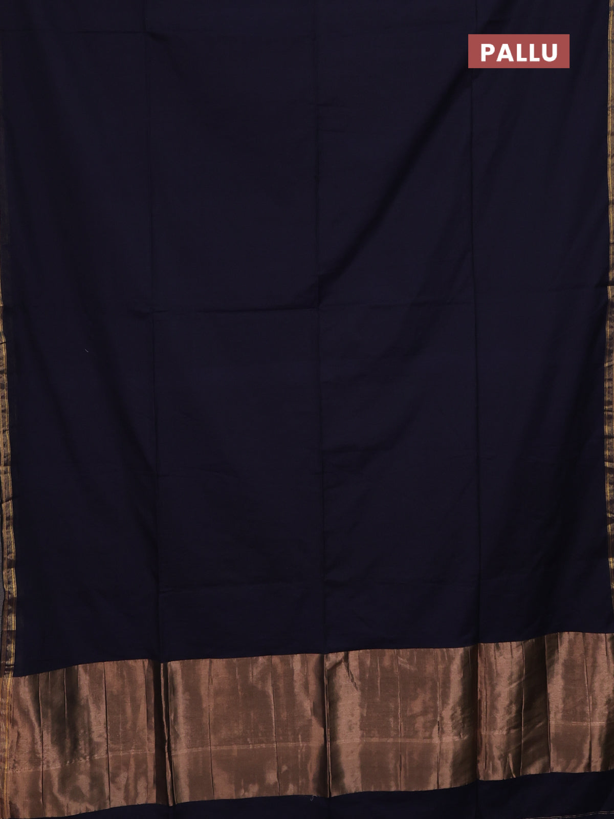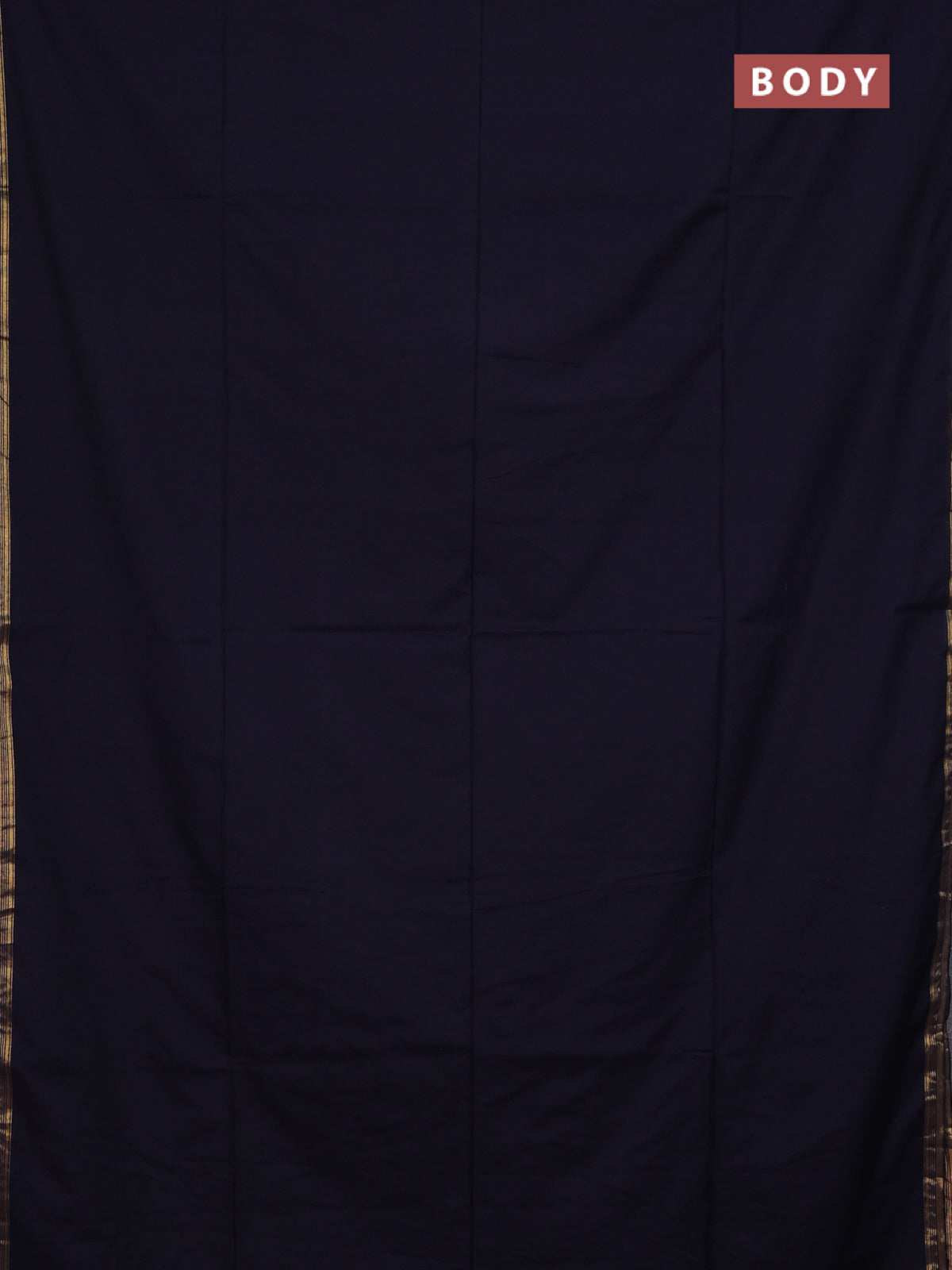 Bengal soft cotton saree deep navy blue and dark mustard with plain body and zari woven border
