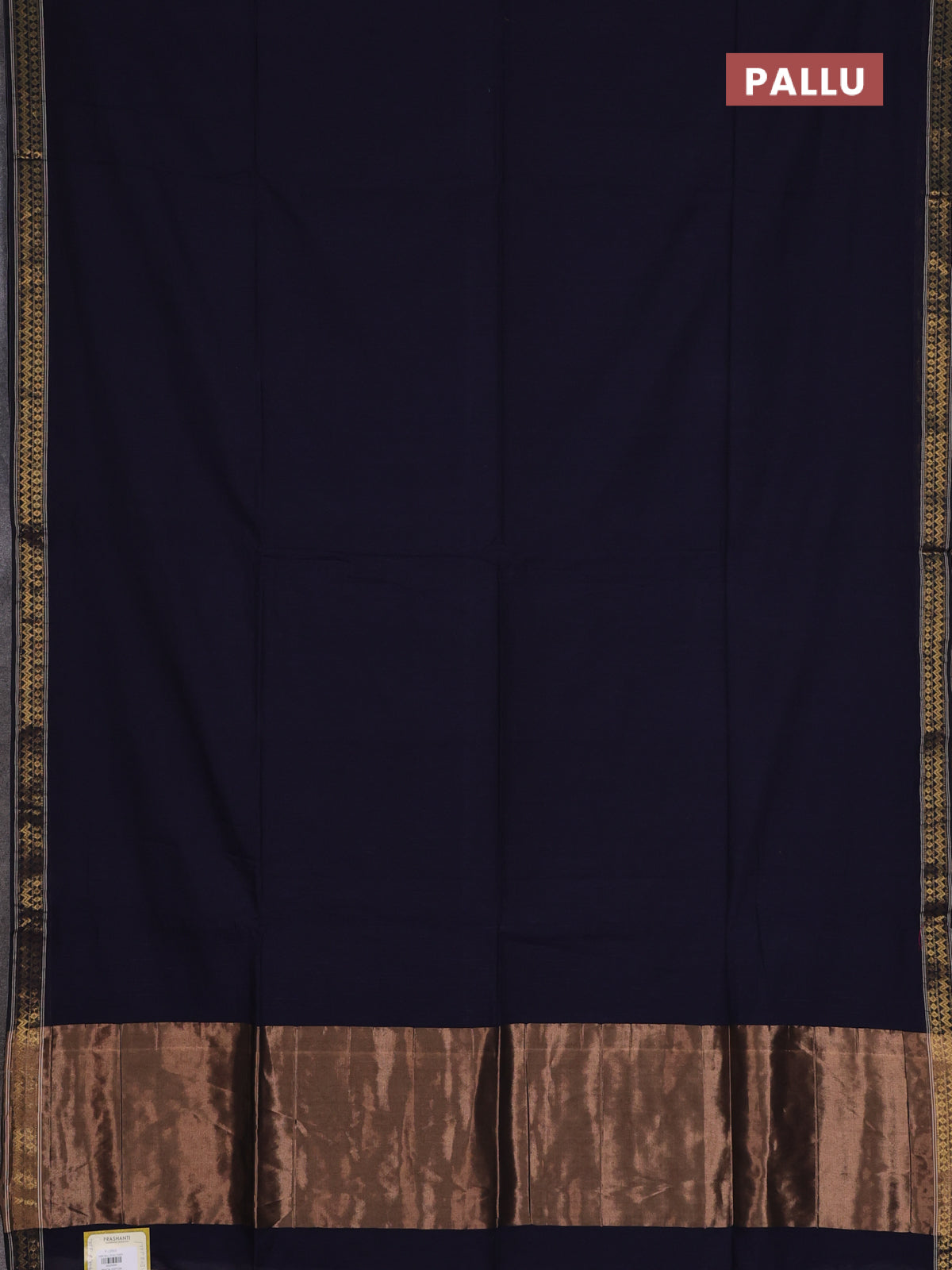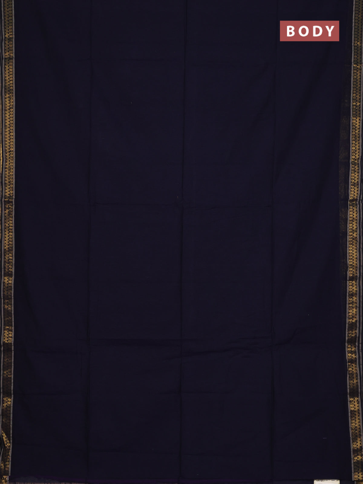 Bengal soft cotton saree navy blue and red with plain body and zari woven border