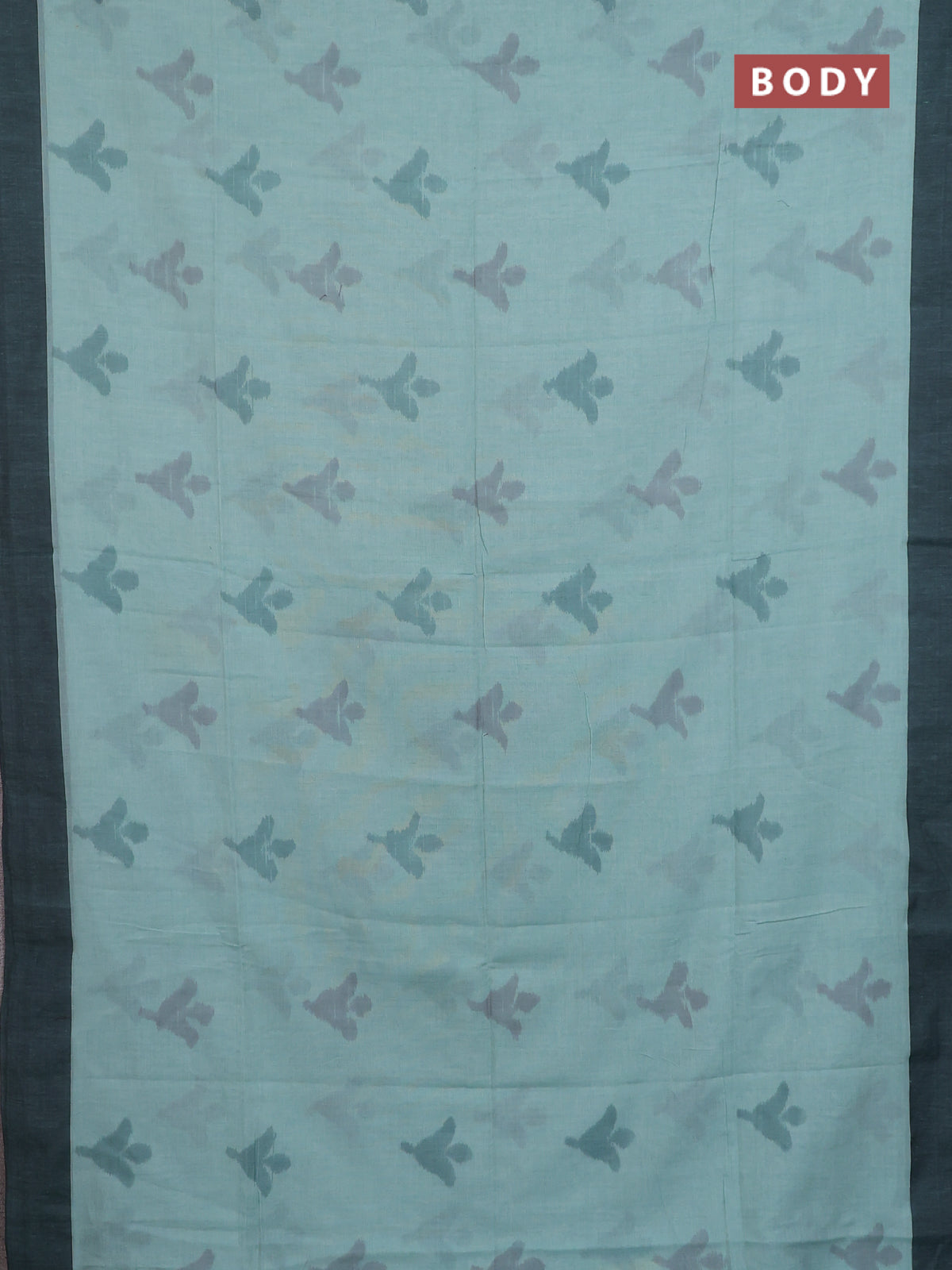 Bengal soft cotton saree teal blue and pastel green with allover weaves and simple border