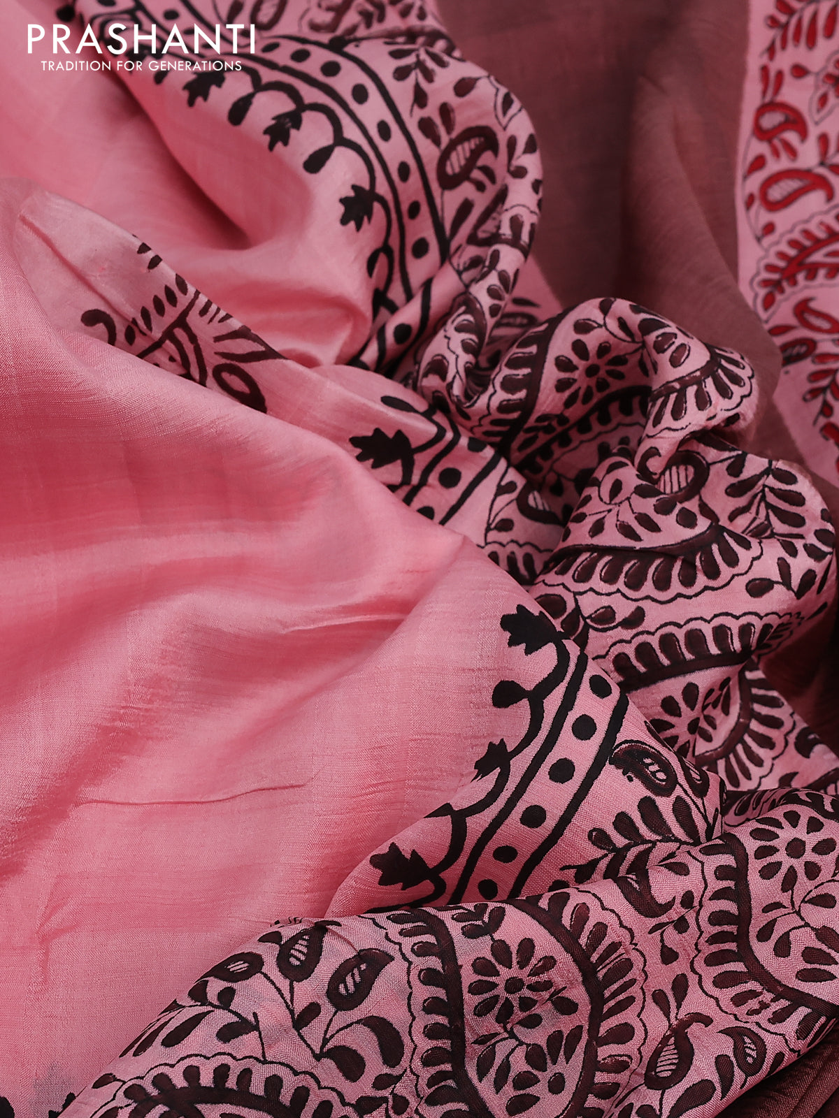 Bishnupuri silk saree peach pink and red with butta prints and printed border