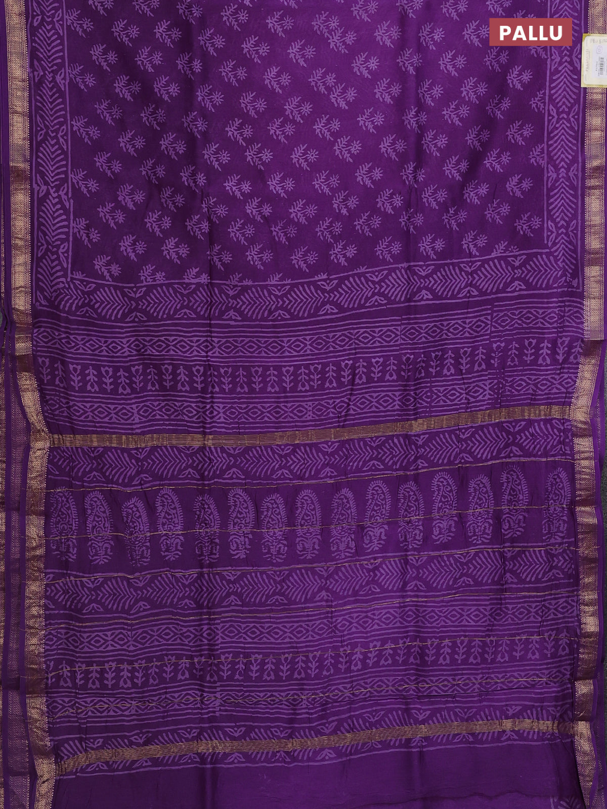 Chanderi bagru saree violet with allover floral butta prints and maheswari border