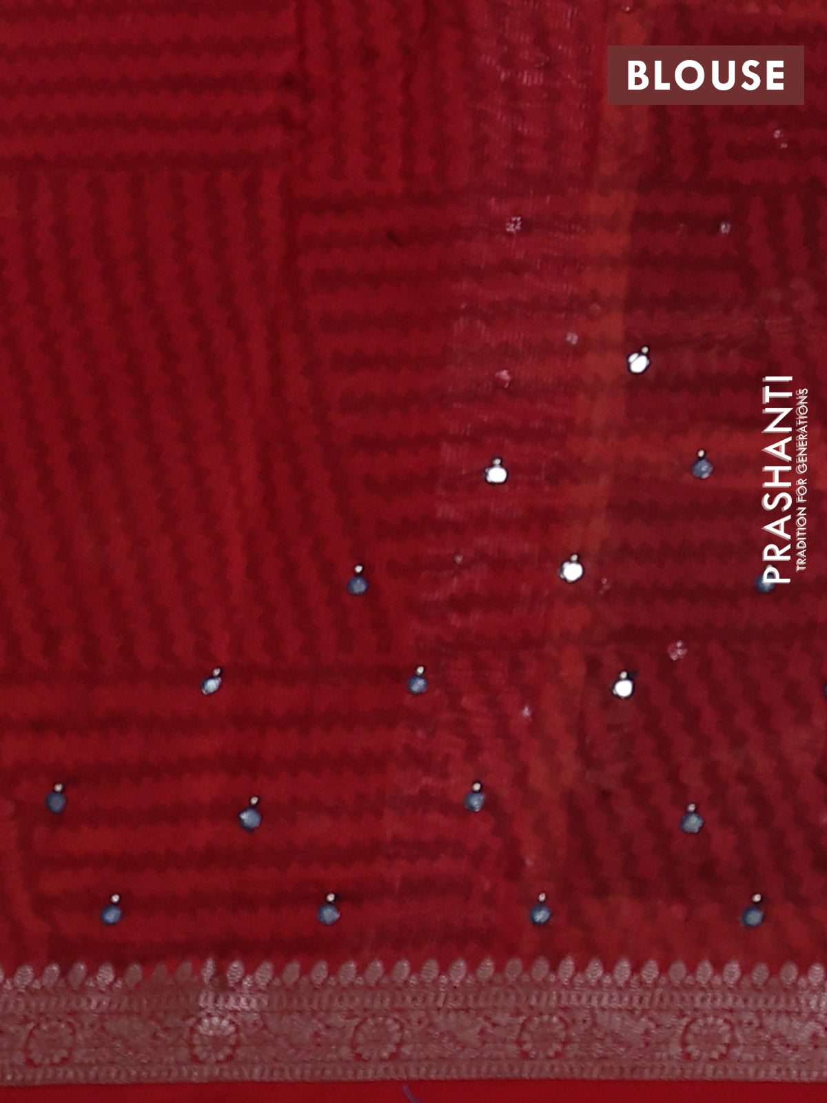 Chanderi silk cotton saree peacock blue and kumkum red with allover geometric prints & mirror work and woven border