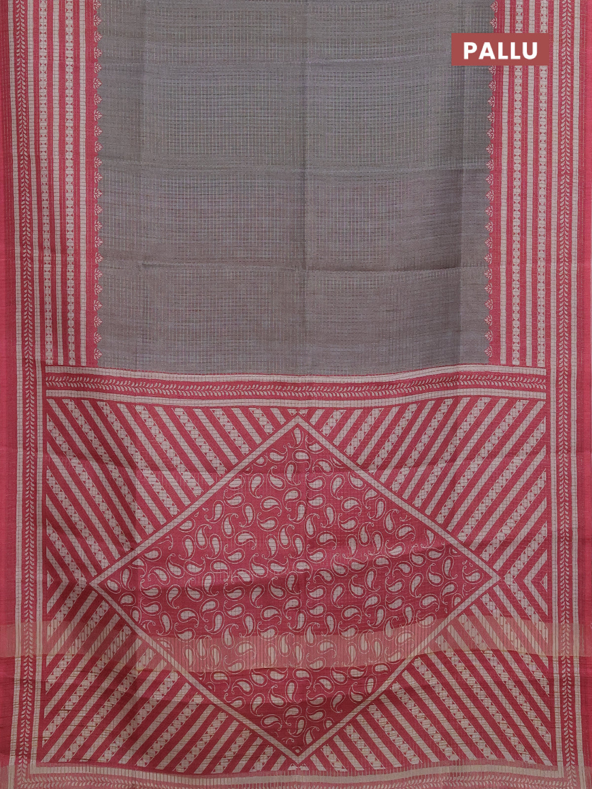 Chappa saree grey and mauve pink with allover small zari checked pattern and printed border