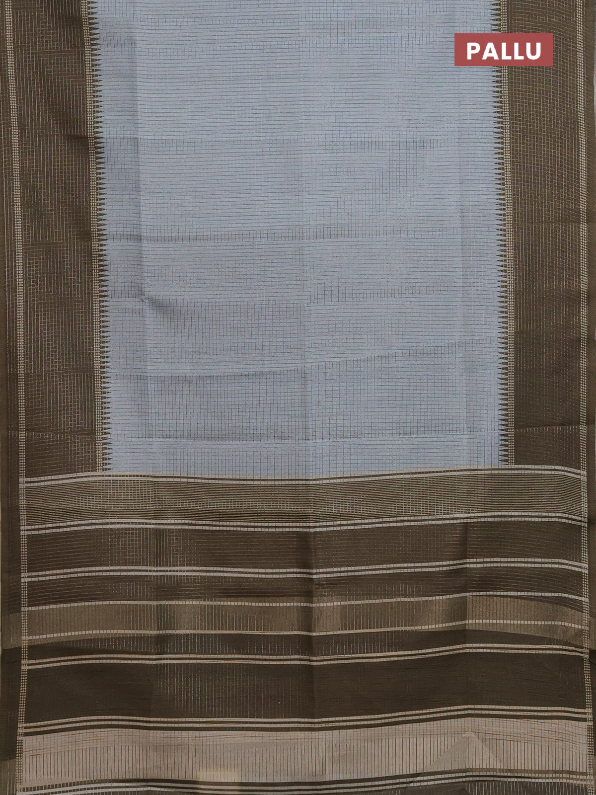 Chappa saree pastel grey and dark sap green with allover small zari checked pattern and temple design zari woven border