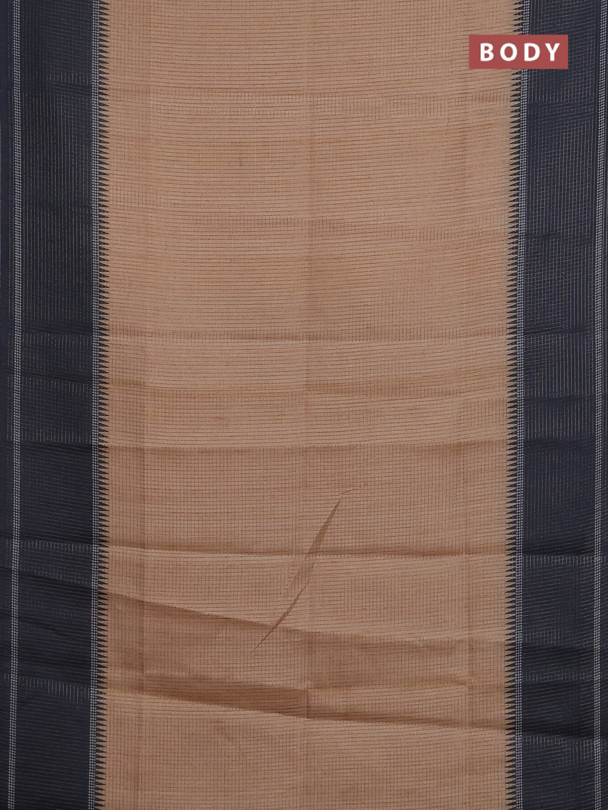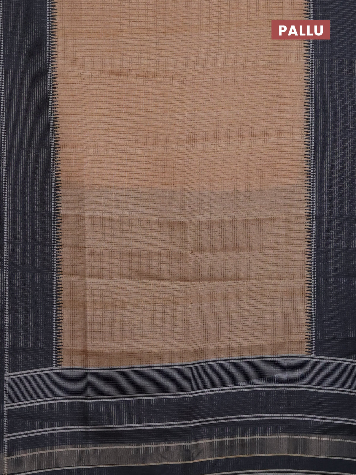 Chappa saree sandal and black with allover small zari checked pattern and temple design zari woven border
