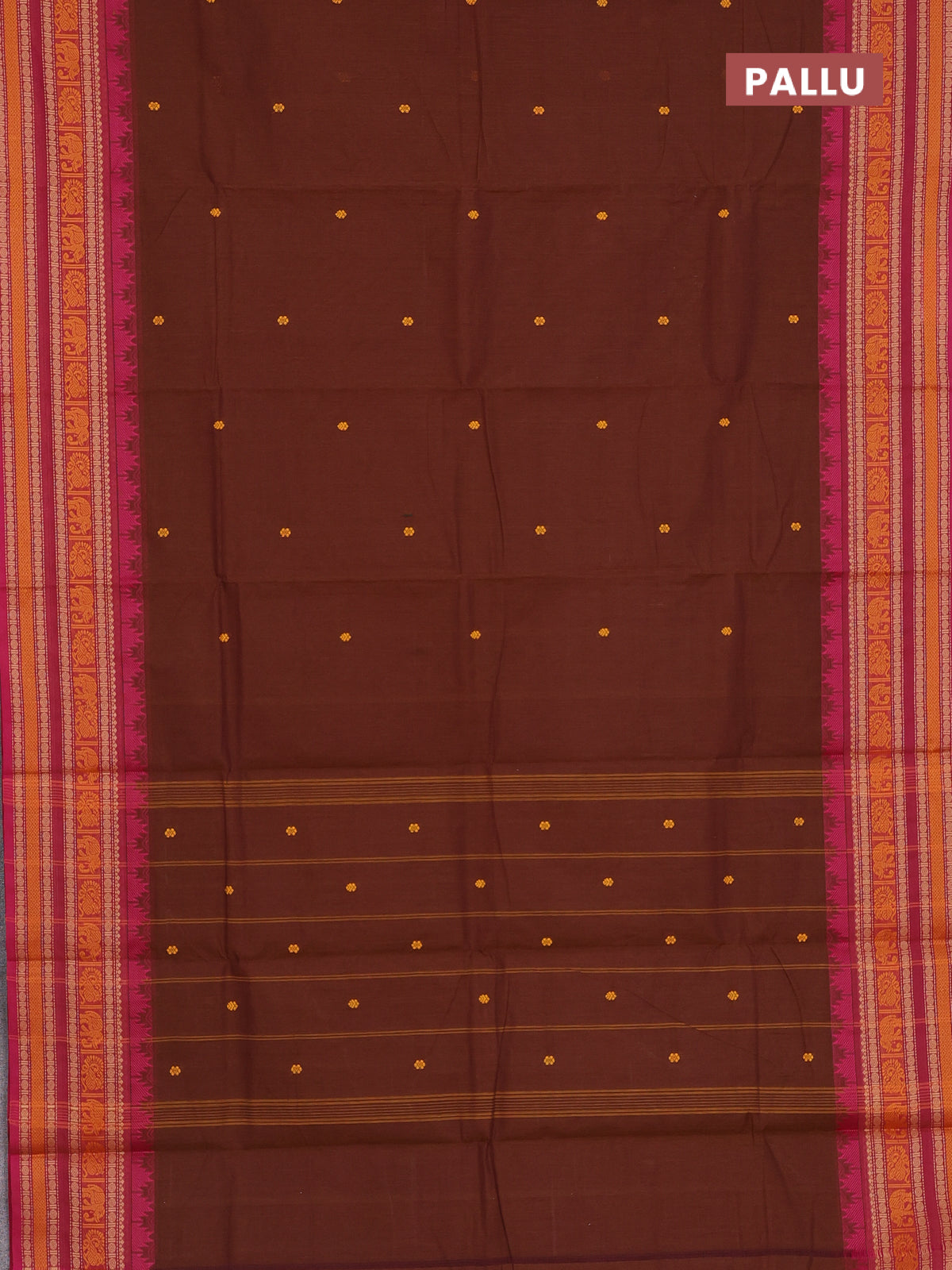 Chettinad cotton saree brown and pink with thread woven buttas and thread woven border